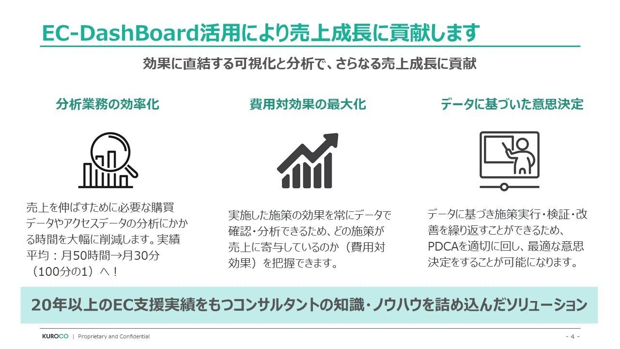 このように、今までECビジネス現場でひたすら行ってきたデータ分析と、そこからの打ち手の実行、これらをパッケージングしたものになります。