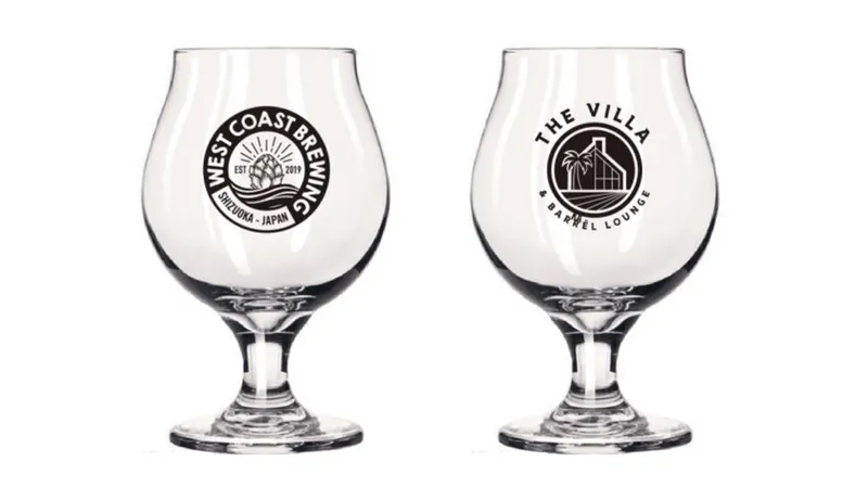 グラスは、WCB×The Villa & Barrel Loungeのダブルロゴ入り!