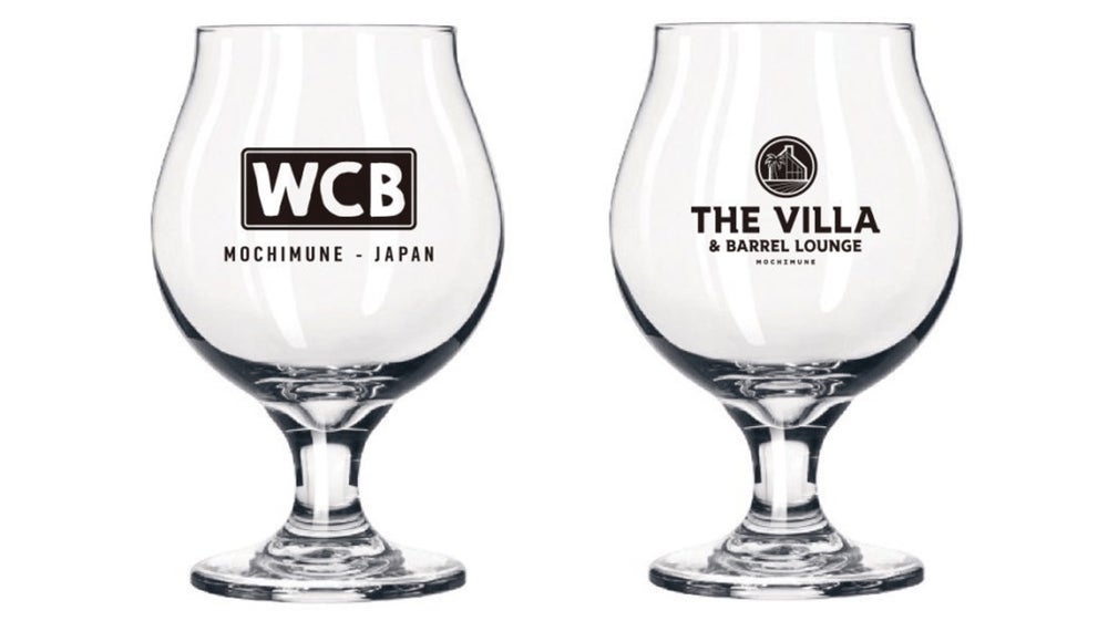 パイントグラスは、WCBの横ロゴとThe Villa & Barrel Loungeのダブルロゴ入り!こちらは、タップルームで使用予定のグラスとなります