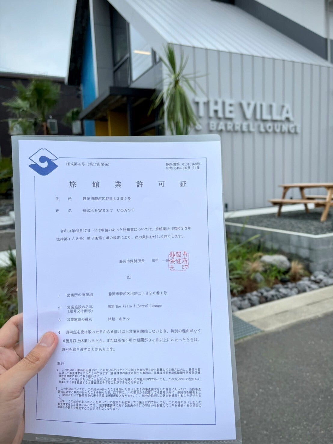 消防・保健所の検査を経て、先日「旅館業許可証」を取得することができました!