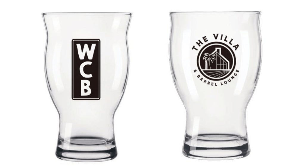 グラスは、WCBの縦ロゴとThe Villa & Barrel Loungeのダブルロゴ入りのオリジナルIPAグラス(495mL)になります。