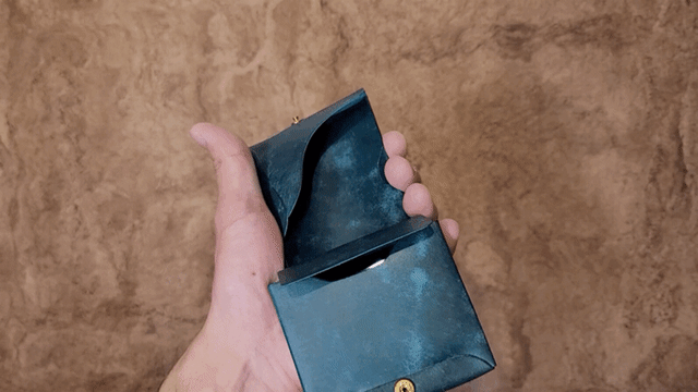 1枚革で作ってみたところどうしても使いにくかったので どうせならこの構造のまま縦幅を小さくして二つ折りの限界設計を目指そうというのがきっかけです。