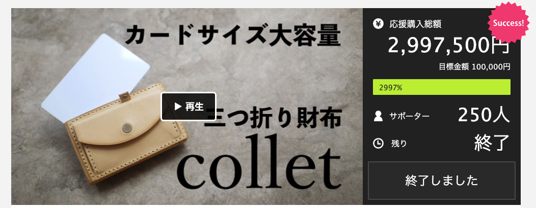 第一回クラウドファンディング「collet」299万円