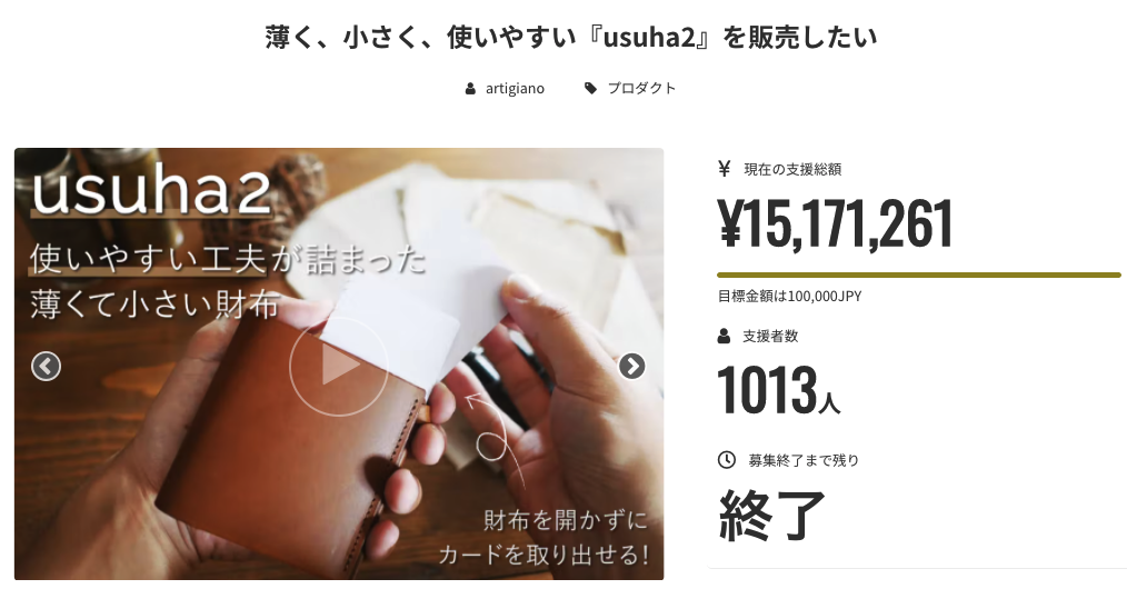 2022/06/28 16:38こんにちはレザーアトリエ点と線の縄田です。この度はusuha-mini smooth ver.プロジェクトへの沢山のご支援誠にありがとうございます。長かったプロジェクト期間も残り一週間を切ってまいりました。usuha-miniは最小限界のサイズながらも大容量で使いやすい小銭入れを備えた自慢の設計のお財布です。ギズモードジャパン様の記事にてご紹介していただいておりますのでお時間ありましたら記事をご覧になってみてください。レビュー記事[生成/ブラウン]レビュー記事[ブラック/ブルー/ワイン]発送は各リターンの発送月の末日頃となります。お待たせいたしますが、よろしくお願いいたします。 もっと見る