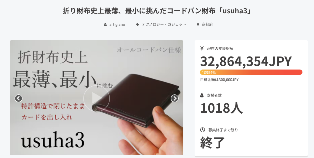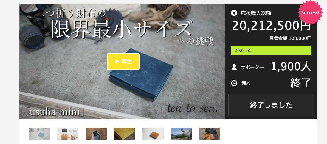 2022/07/05 18:56少し遅くなりましたが、昨日で長かったプロジェクト期間も終わりました!本当に沢山のご支援誠にありがとうございます!!今回は「点と線」では初の同じ形の革違いのプロジェクトとあってそこまでの期待はしていなかったのですが、想像以上のご支援に感激致しました。本来なら早く世に出したい新しい形が沢山あるのですが、色々な方々に「革違いもそのうちやりますー」的な事を言ってしまっていたために実施したプロジェクトです。ただ結果としては想像のはるか上を行くもので、特に前回Makuakeで開催したusuha-miniプロジェクトの評判を聞いて購入したというお声の多さにビックリしました。前回のusuha-miniのプロジェクトは期間を1ヶ月残して完売していた為、気にかけて頂いていた方も多かったのではと思います。全て京都の8畳ほどの小さな工房兼店舗で手作りしている物なので中々思うように商品を展開していけないのですが、少しずつクラウドファンディングをしながら商品ラインナップを増やしていこうと思っています。店舗の規模も少しずつステップアップしていけたらと思っています。クラウドファンディングに出しても良いような最高のクオリティの作品だけのブランドという展開をしていけるなら今後とんでもないクオリティの型紙が集まるようにしていけるのかもしれません。これからも皆さまの興味が集まるような極まった型紙だけを製作していこうと思っていますので今後にもご期待くださいませ。この度は本当にありがとうございました! もっと見る
