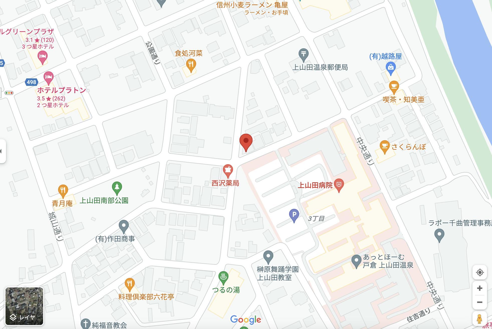 店舗予定地(元製造所)は、長野県千曲市の温泉地、戸倉上山田温泉の中に位置しています。