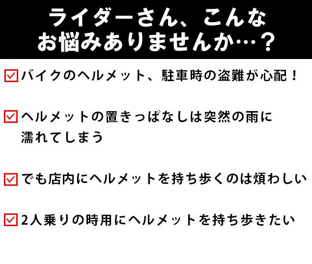 持ち運びができるので、大事なヘルメットが盗難や雨の被害にあうこともありません。