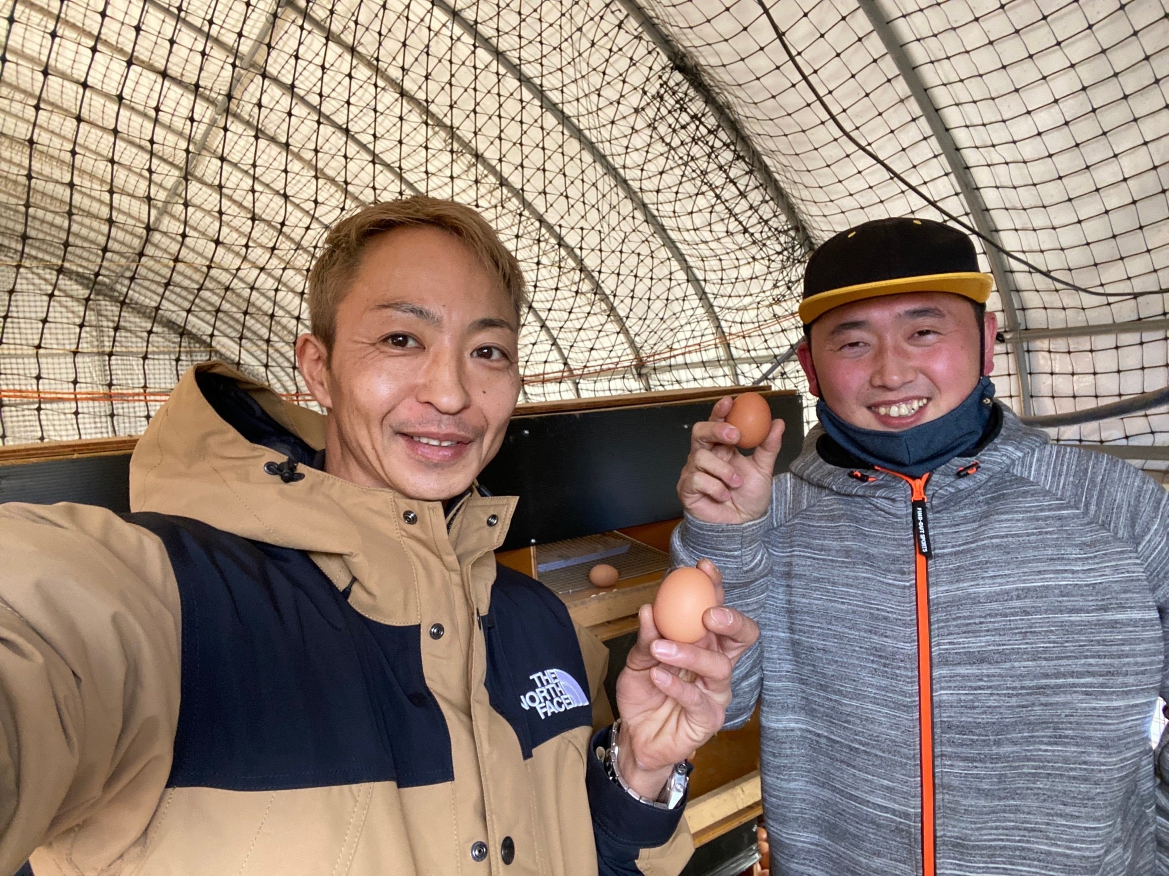天空の卵、生産者の宮永さんと■卵は有機野菜を食べて育った放し飼い自然卵「天空の卵」を使用させていただきます。