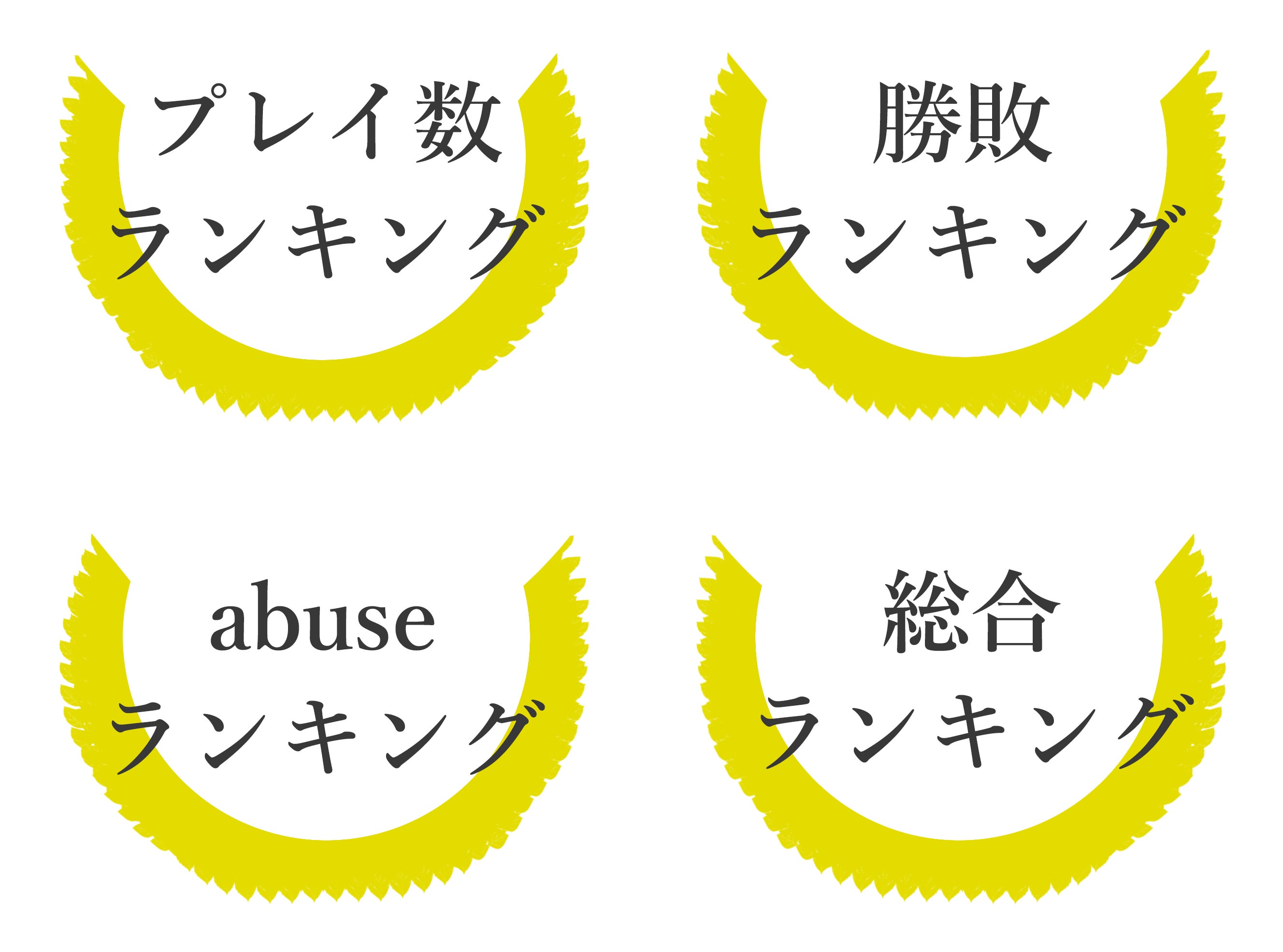 総合ランキングとは・・・プレイ数・勝利数・敗退数・abuse数を総合したランキングです
