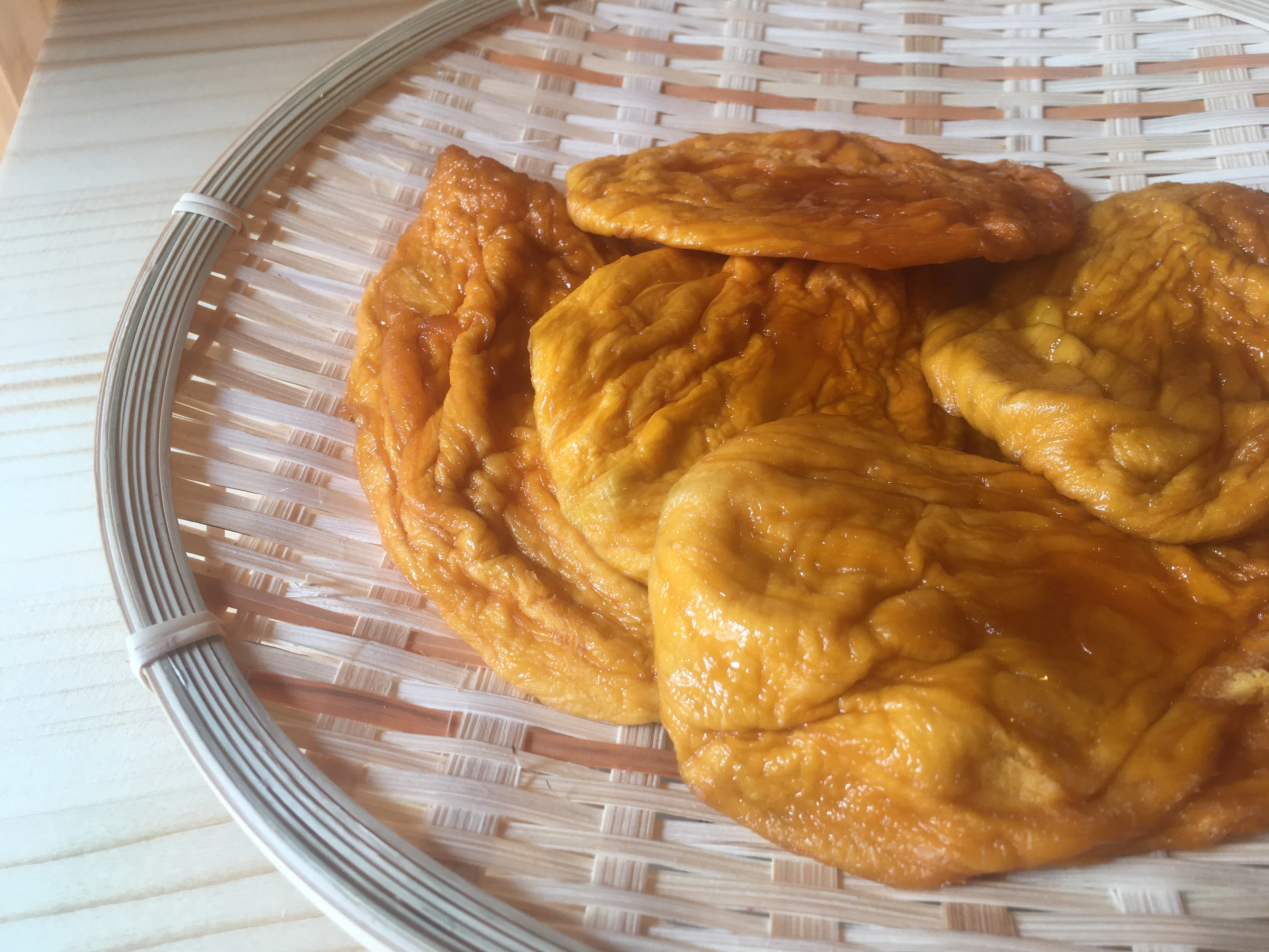 ドライフルーツ販売のきっかけは台北で出会った主人の実家に初めて行った時でした。台南駅から車で約1時間ほど、マンゴーの一大産地玉井のすぐ近くの農村でした。そこで主人の家族が台湾茶と共に、地元で作ったというドライフルーツをお茶菓子に出してくれたのです。そこで出していただいたお茶ももちろん美味しかったのですが、お茶請けのドライフルーツは、フルーツの味がしっかりする今まで食べたことのある砂糖漬けのドライフルーツとは全く別物のドライフルーツでした。フルーツを乾かしただけなのに、フルーティーで香りが良いドライフルーツでした。このドライフルーツとの出会いは今の輸入販売につながっています。