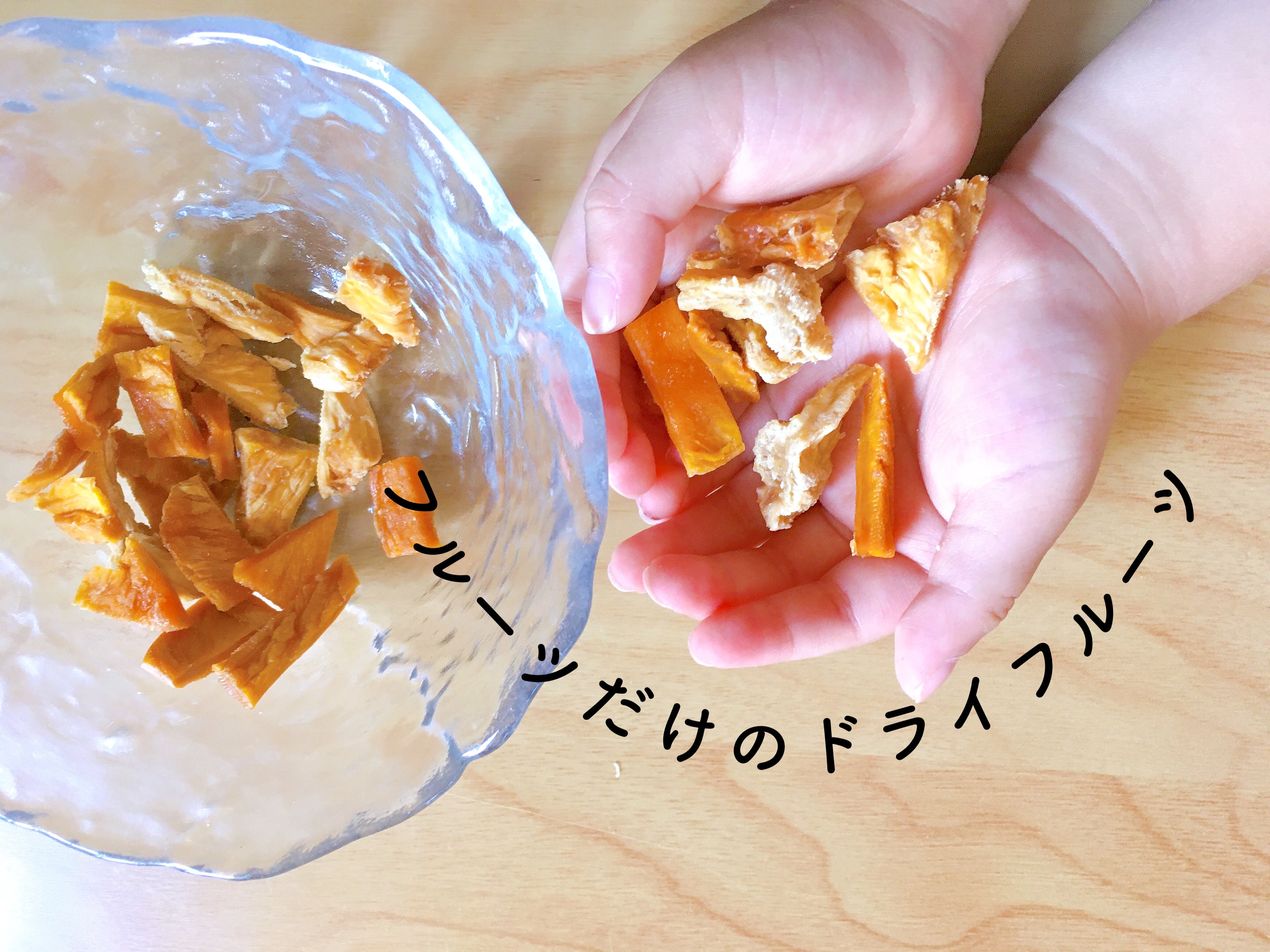 甘く、プチプチ食感が珍しい今が出来立てドライフルーツです。