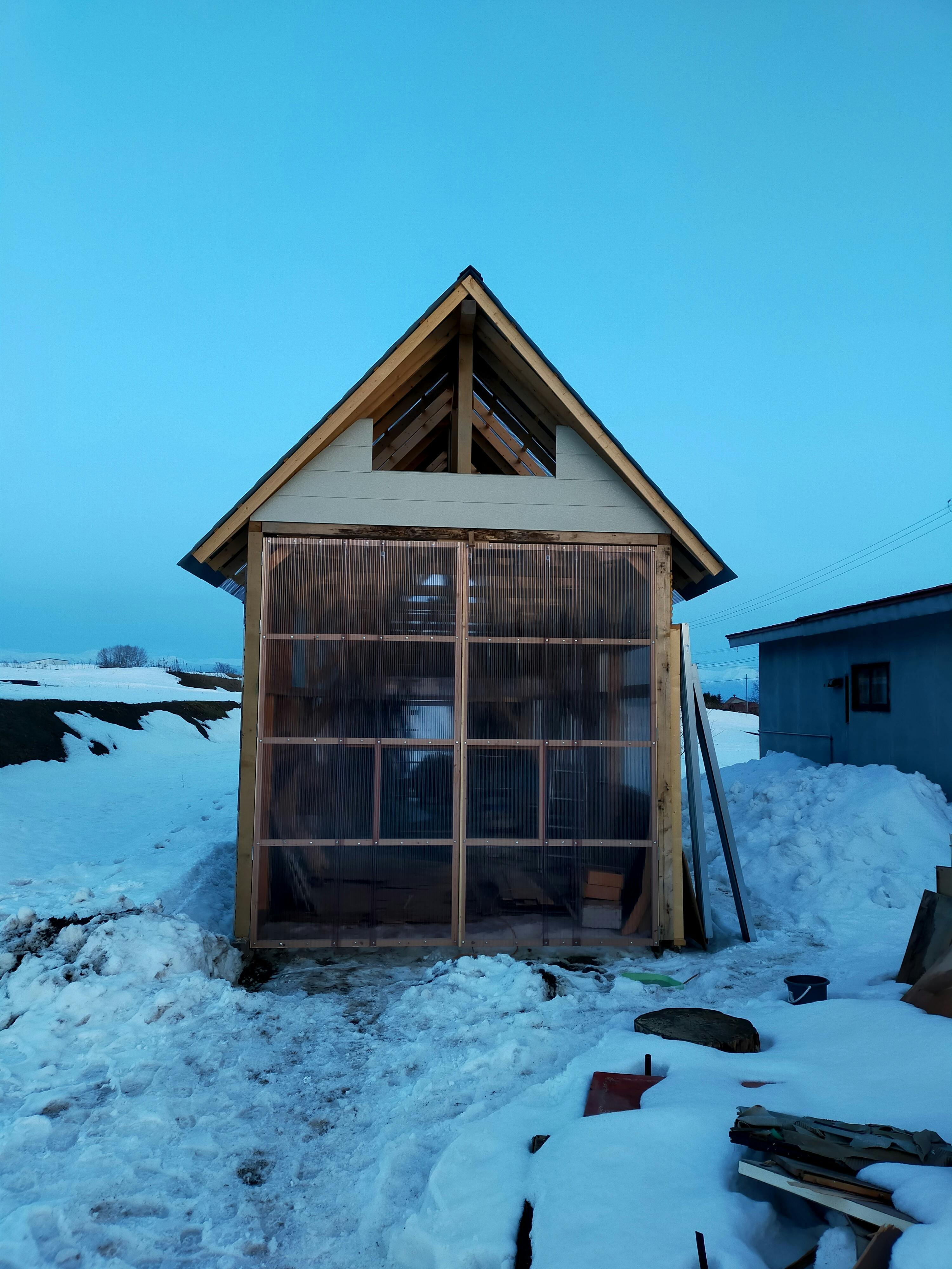 3月もあと13日、コロナ、戦争、地震と世の中は混とんとしていますが旭川キャンプベースは日々前進しております。昨年12月から取り掛かっているガレージ棟にやっと出入口扉が付きました。ポリカの波板も張ってしまうと意外と強くなります。軽いし明るいしまぁまぁ安いし工夫次第でいろいろ使える建材です。世間は明日から3連休、私は明日もここで工事に勤しんでいることでしょう。明日は寒いみたいですが扉が付いたのでだいぶマシでしょう。CFも後半戦、ゴールは遠いですが引き続き温かく見守って頂けましたら幸いです!