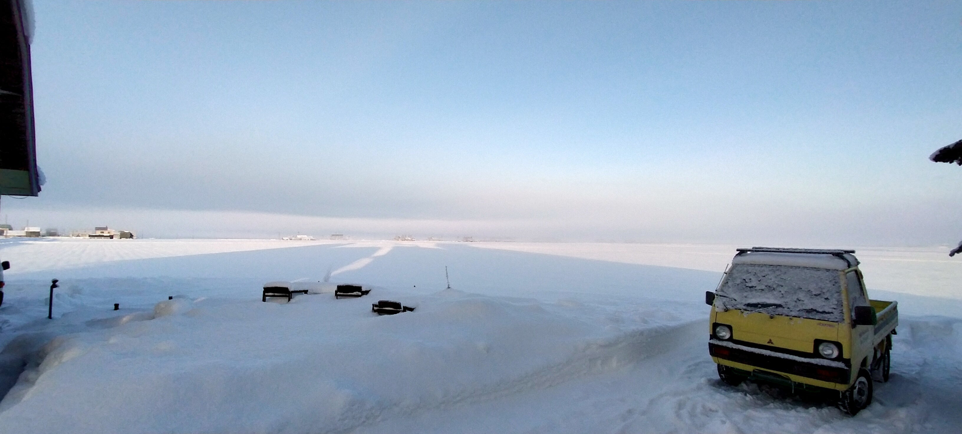 空港越しには大雪山系も望めます。旭川の冬は普通にマイナス15℃を下回ります。屋外の作業はかなり厳しいですが北海道を盛り上げたい一心で突き進めています。前進あるのみ!