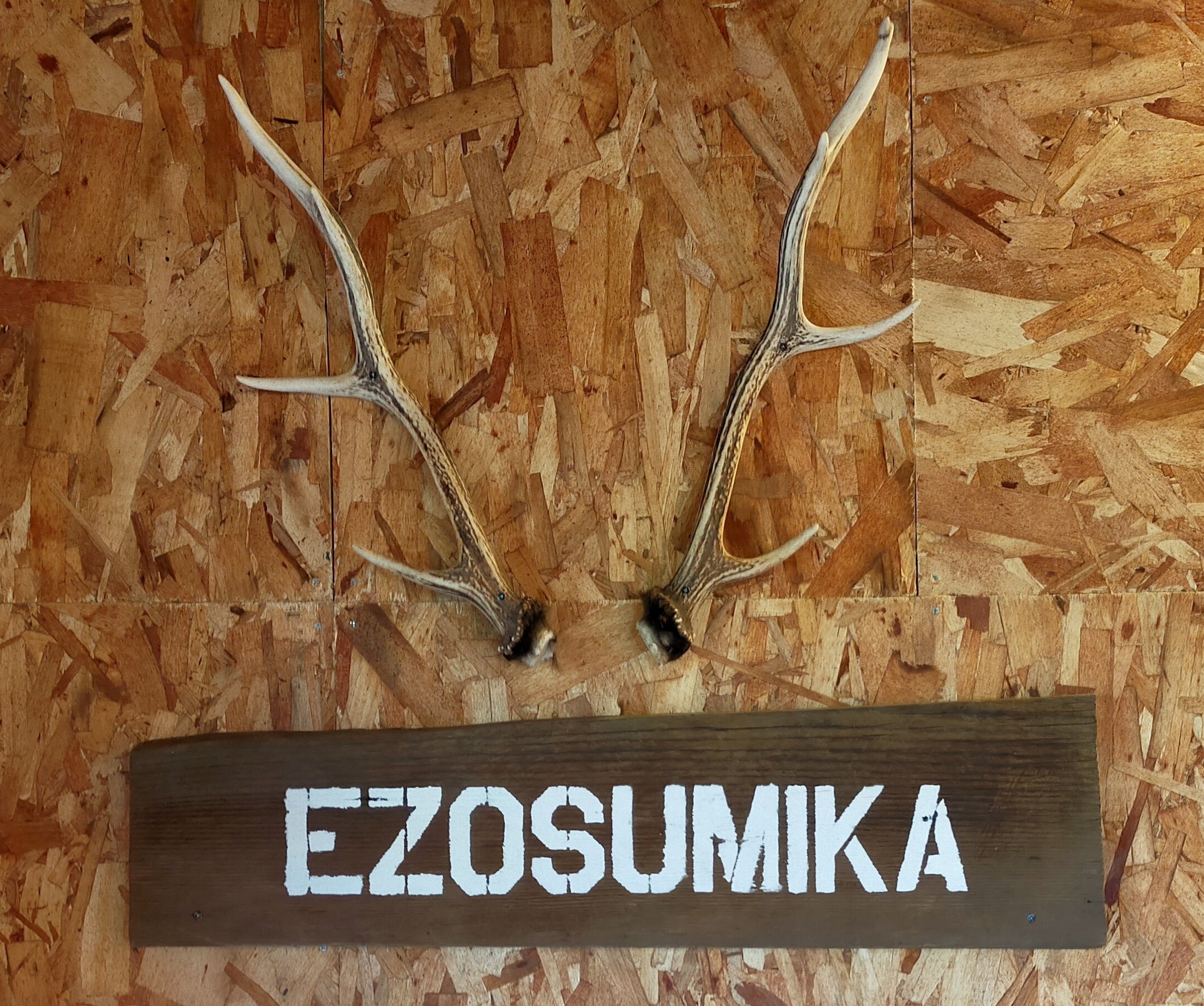 旭川近郊で獲れた野生エゾ鹿の角は迫力満点!とても人気があります。インテリアにいかがでしょうか。Alice Cafe にも飾っています。