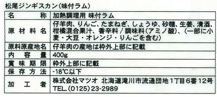 味付きラム 400g x2