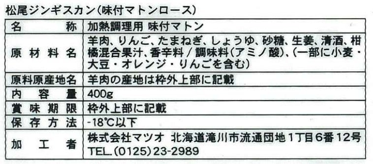 味付きマトンロース 400g x1