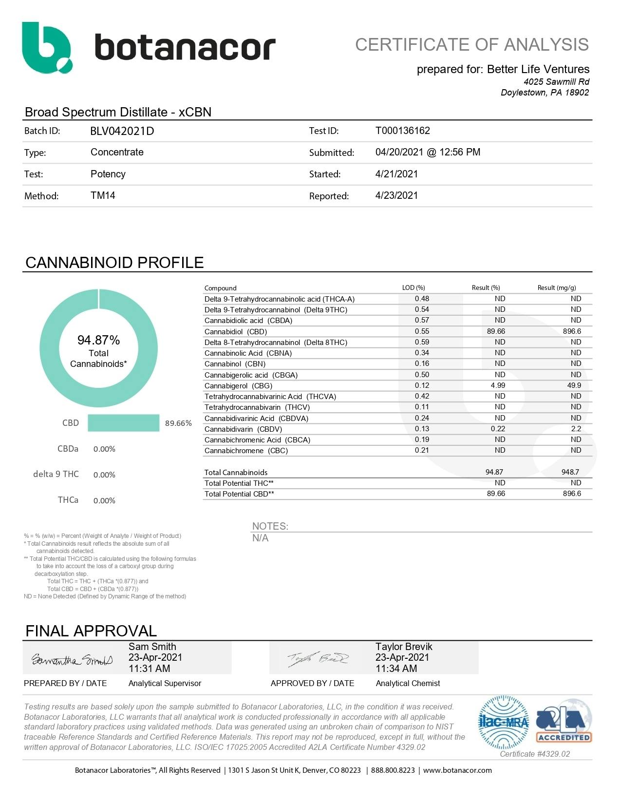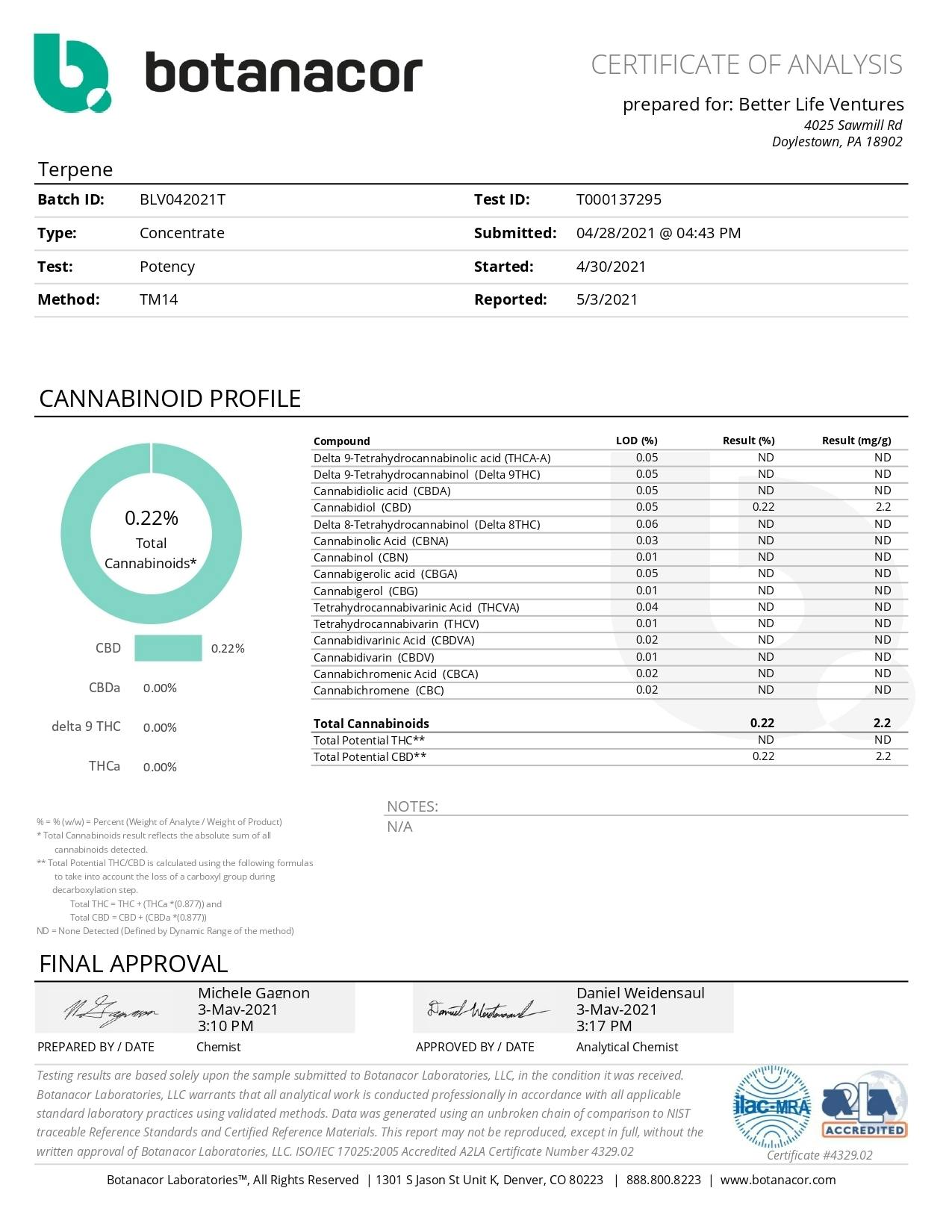 こちらがCBD原材料とテルペンの成分分析結果です