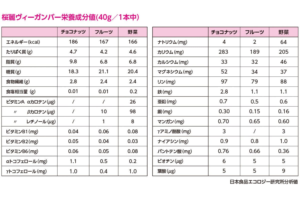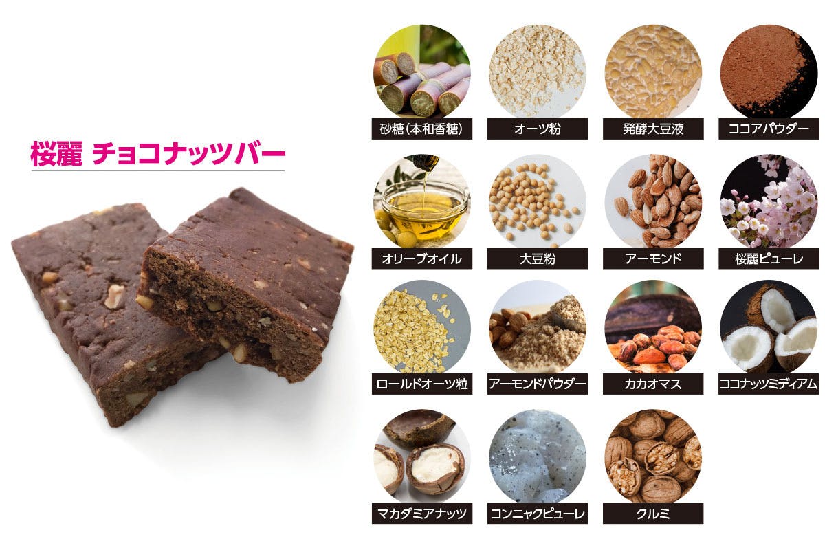 名称:桜麗ヴィーガンバー<3種:フルーツバー、野菜バー、チョコナッツバー>