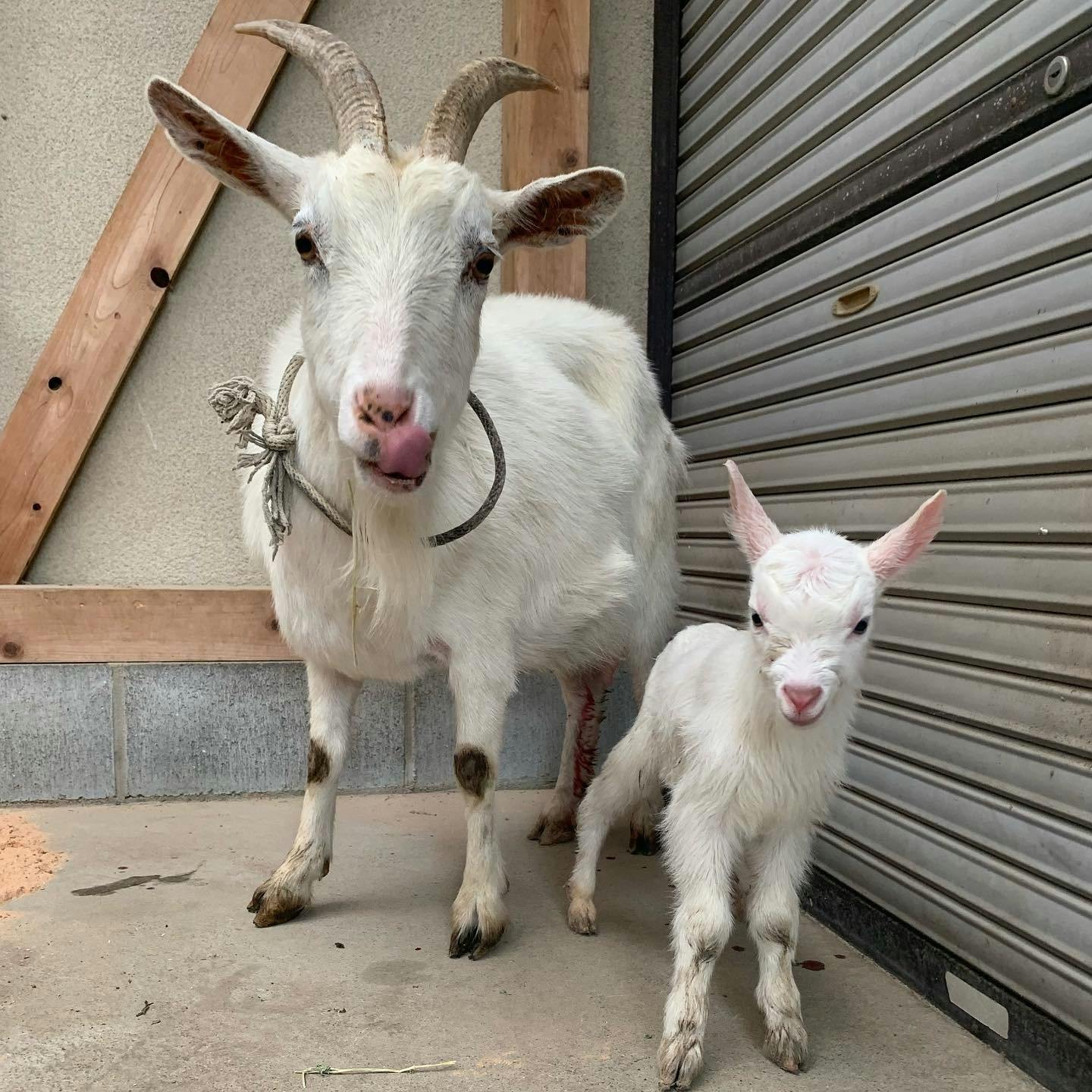 5月1日、妊娠中だったメスヤギの大門さんが元気なオスの赤ちゃんを出産しました!