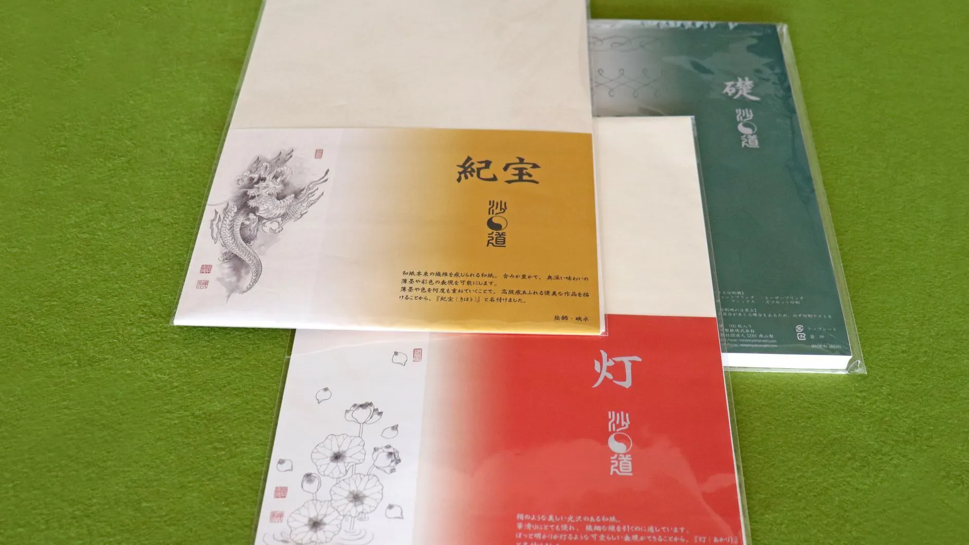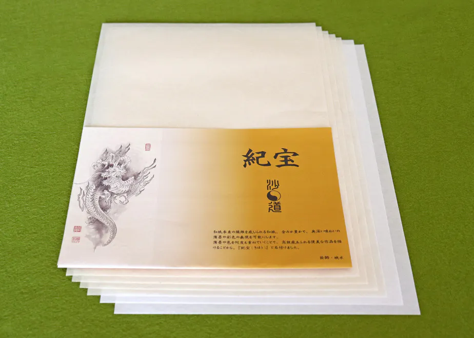 〇笠井伸二氏(山十製紙)による「清書用写仏和紙2種」「紀宝」(和紙5枚・裏打ち紙2枚入り)
