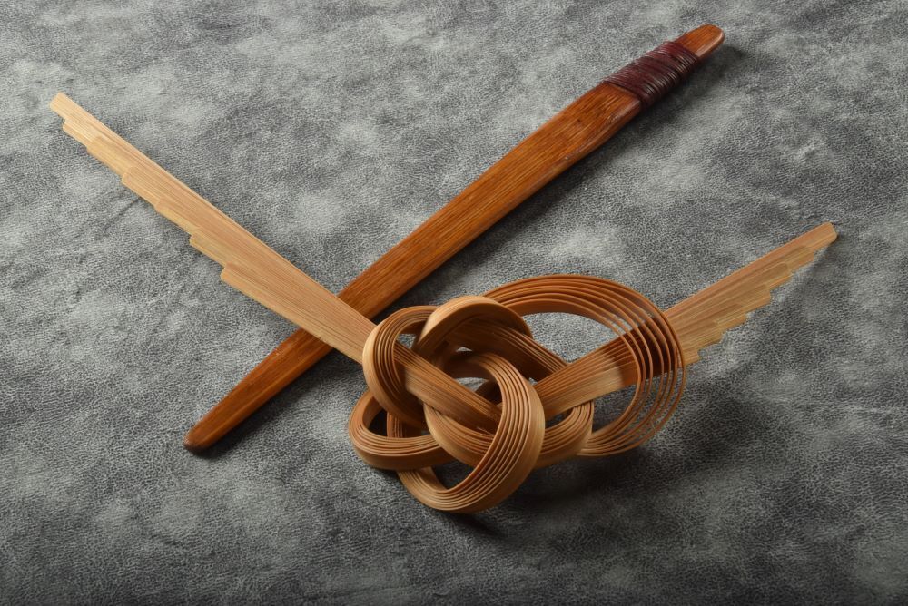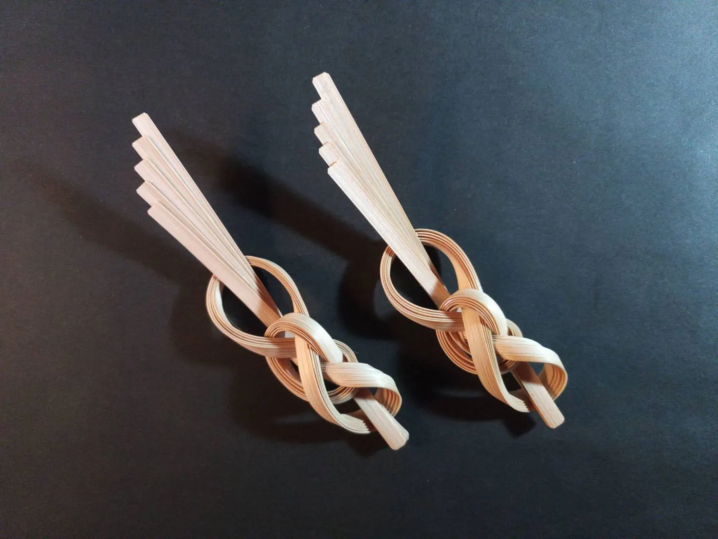 竹を補足割り、ゆっくりと力を加えながら曲げて作った箸置き。多くのお問合せを頂いた「桐の箱を留める竹工芸品」のミニチュア版です。