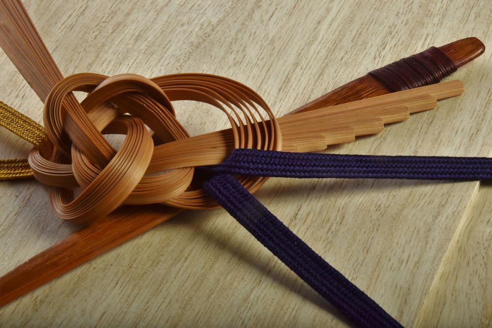 「写仏セット」のお宝箱をどのように蓋をするのか…。これが最後の最大の難関でした。柔らかくしなやかな絹の組紐と竹芸を組み合わせ、この止め方にたどりついた時の喜びを皆様とも分かち合いたいと思っています。