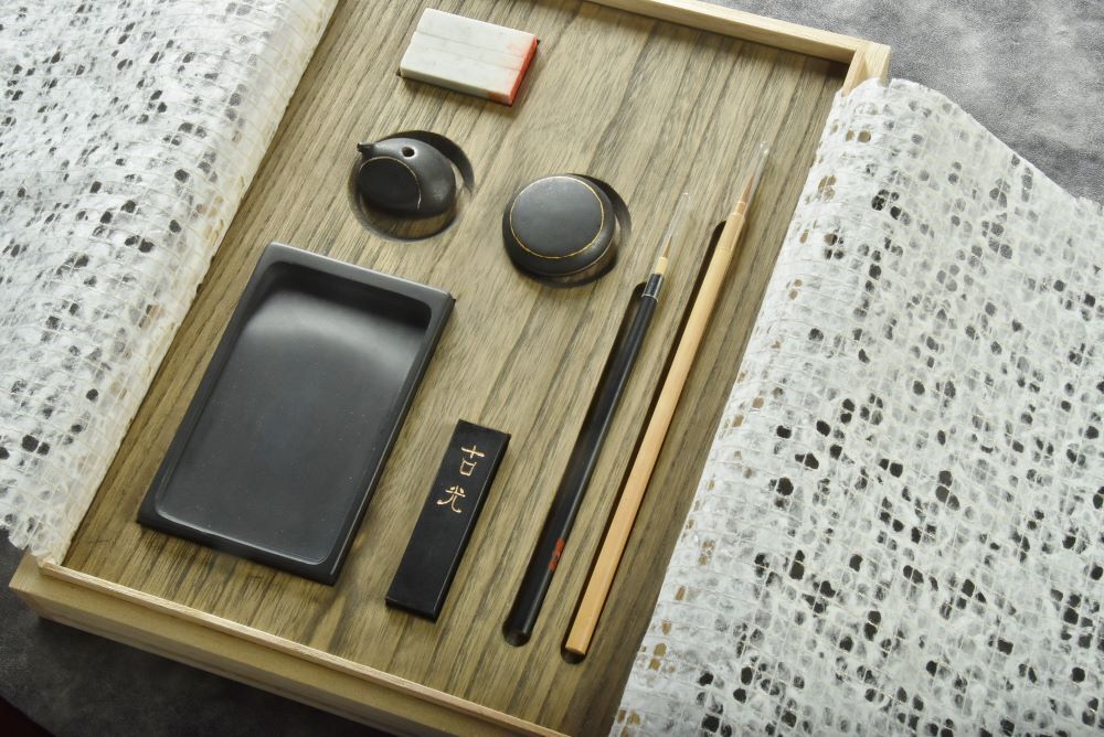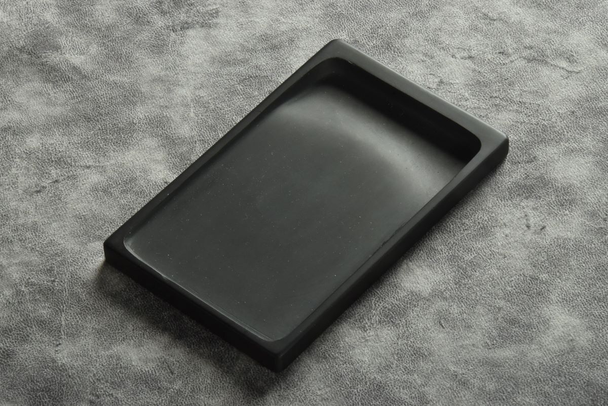一瞬、スマートフォンかと見紛うような硯は、一切の華美な要素を排除し、シンプルかつ洗練されたデザイン。雨宮弥太郎氏曰く、『硯は単に墨を磨るための道具に留まらず、墨を磨るうちに心を鎮め、自分の内面と向き合う為の「精神の器」である。硯に向かう事は禅の石庭に向き合うことと同義であり、硯は精神的なオブジェとしての現代彫刻である』と 。