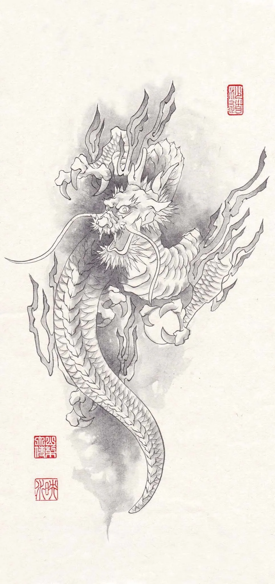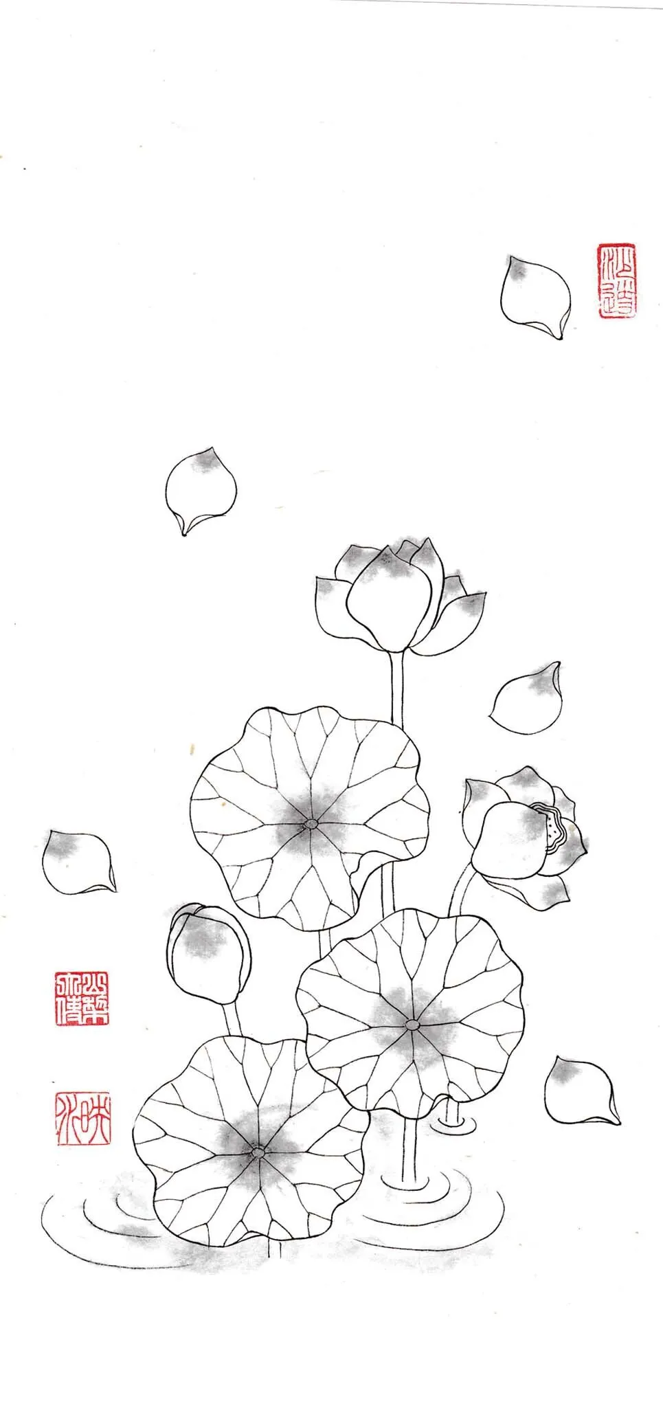 図柄は「龍」「お花」「線描きの練習用」の3種類。この他のお手本は、映水氏の公式LINE『映水のアトリエ』からダウンロードすることができます。