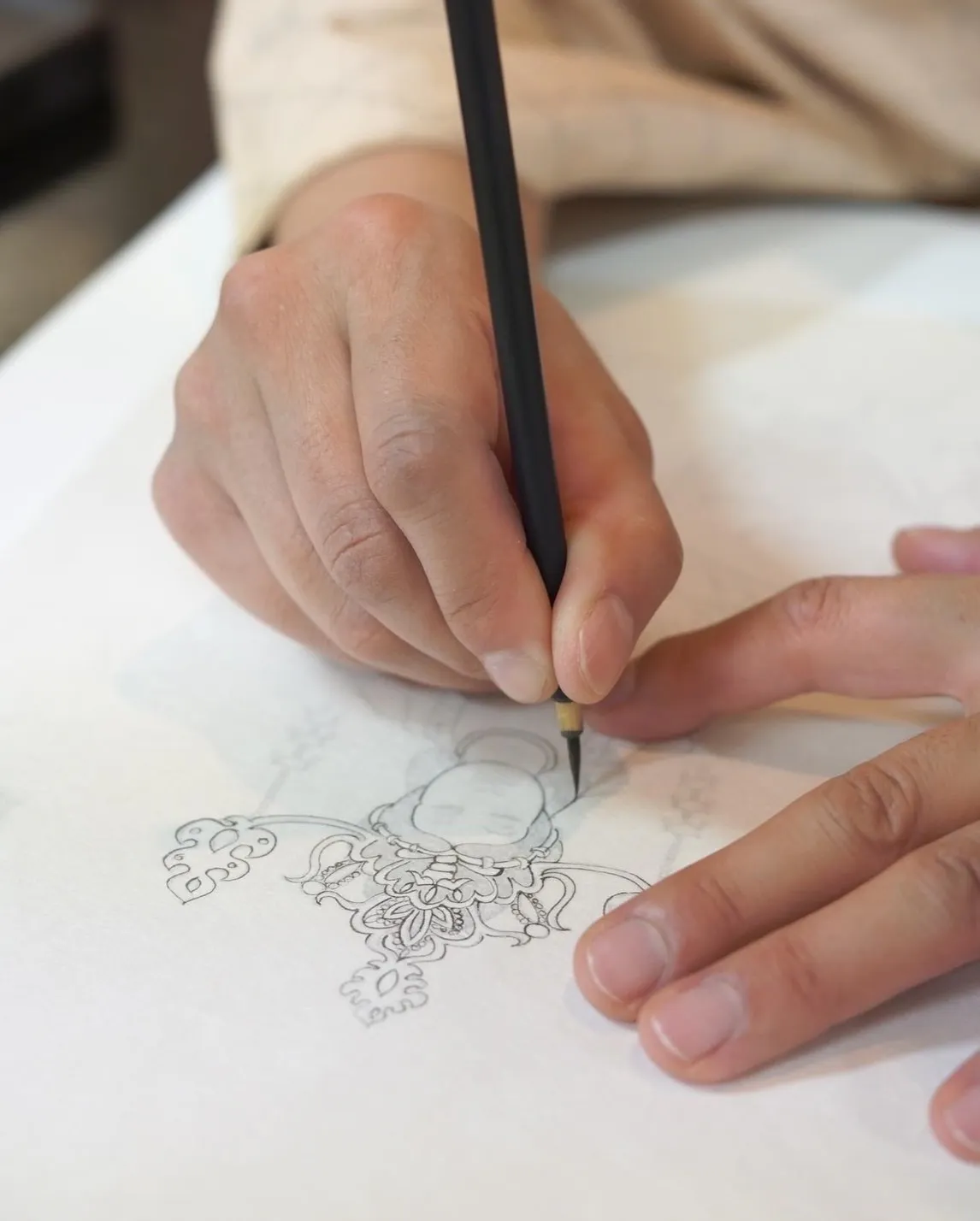 何度も試し書きを重ね、命毛の長さから毛量、太さ、毛の柔らかさまで映水氏がこだわり抜き、良質の筆の産地として名高い広島県安芸郡熊野町にある筆店に作っていただいた「沙道プロジェクト」オリジナルの筆です。 細かい線も滑らかに描くことができるので、写仏に最適です。