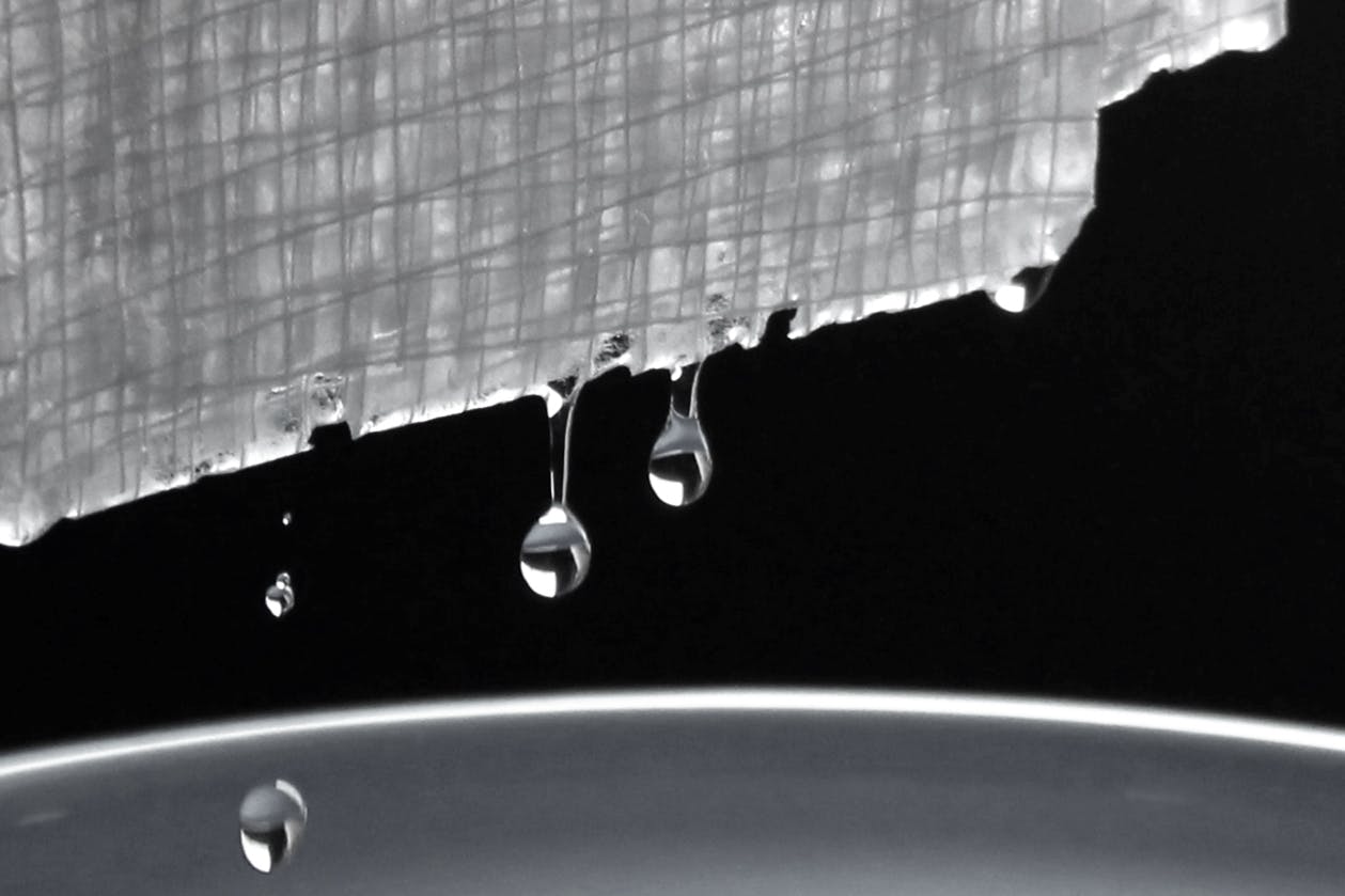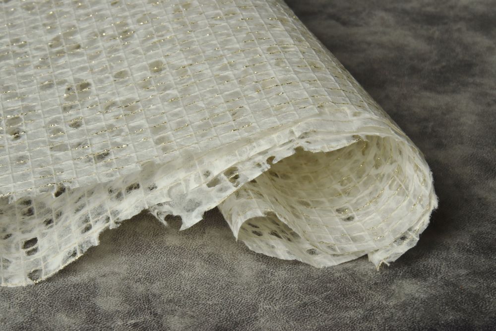 日本一の障子の生産地である山梨県・市川三郷町で、高品質な障子紙や特殊な和紙を創業以来作り続けている金長特殊製紙の新作です。「糸落水®️」は、乾燥する前に水を落としてムラを作るという、絶妙なタイミングと技法を駆使、日本伝統の和紙と糸のみというシンプルな素材で作られた新しい形のガラスシート。一般的なガラスフィルムが取り付けられない複層ガラス(二重窓)や凹凸ガラスに、水だけで簡単に貼り付けらることができます。はがすときも水で濡らせば簡単にはがせます。