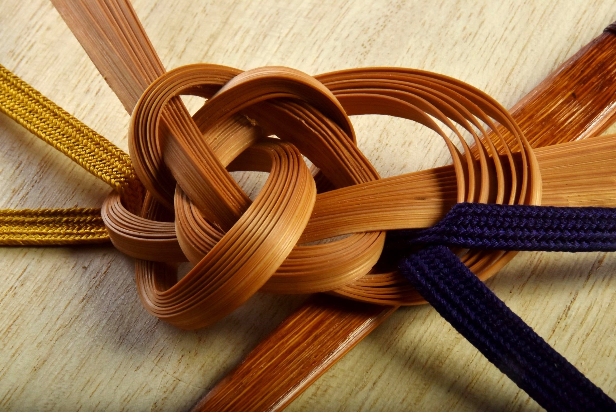 竹を細かく割いていき、内側の柔らかい部分を削ぎ、ゆっくりと力をいれながら曲げていき、形を作っていくことで竹芸へと美しく姿を変えていきます。
