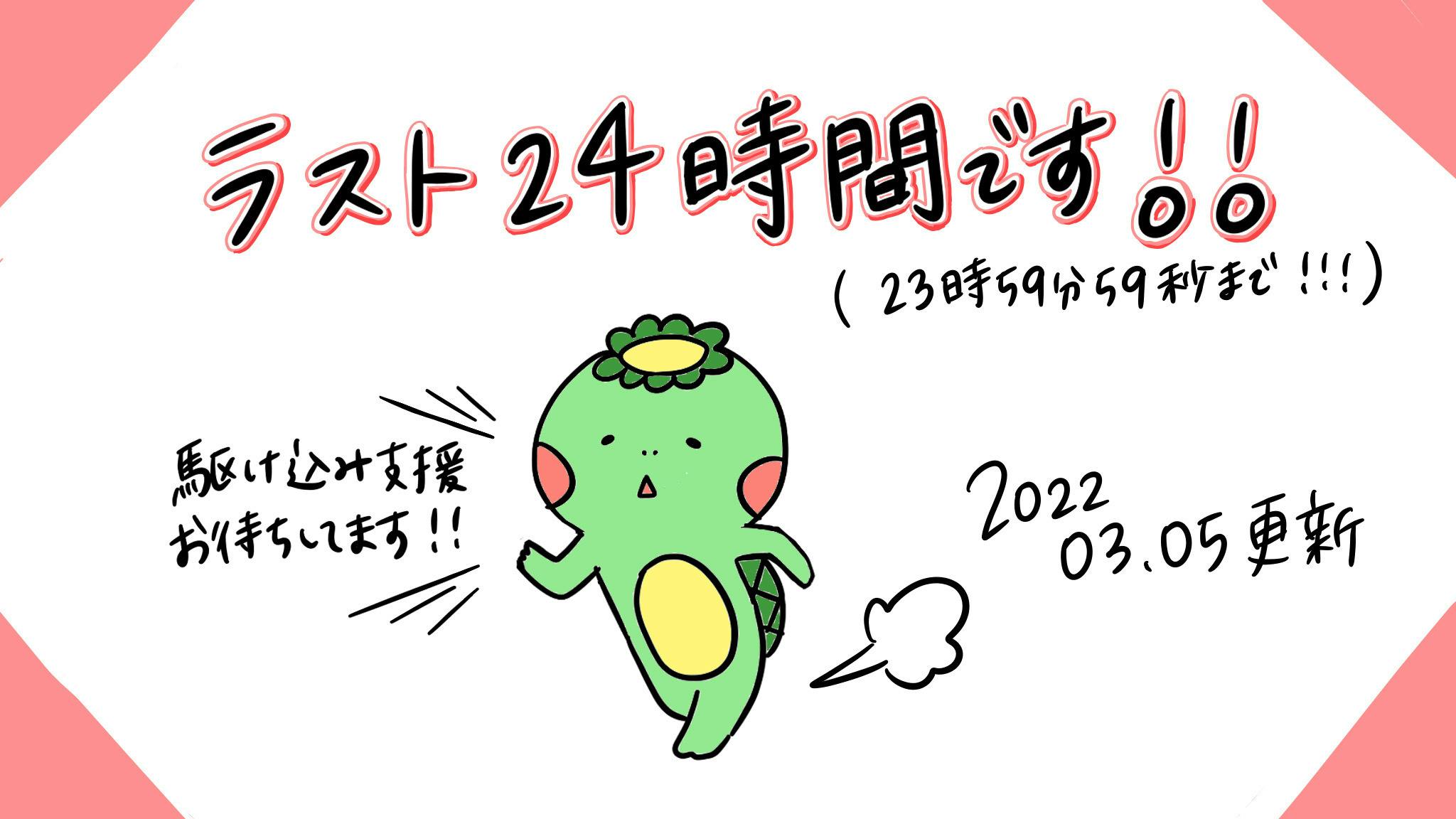 もし、この活動報告を読んでくださっている方の中に、まだ支援を悩んでいるという方がいたら、最後の24時間で少しでもPRができればと思い、活動報告を更新させていただきました!遅い時間に通知が行ってしまってスミマセン;;