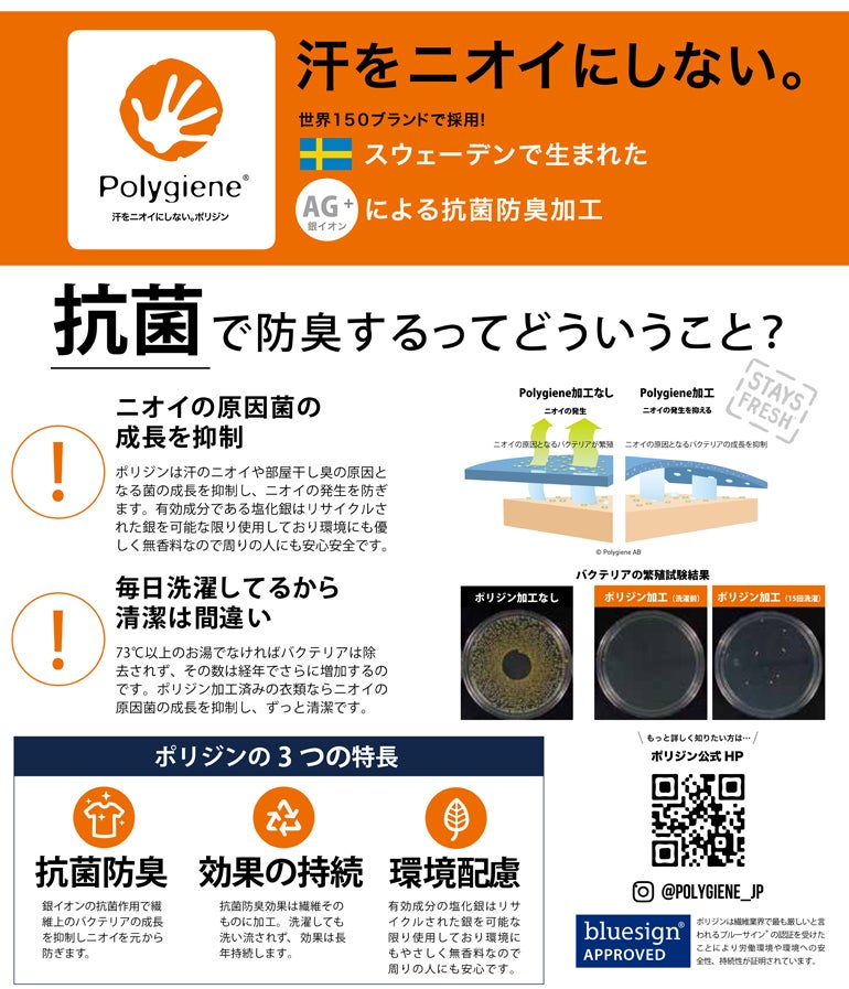 この技術は、スウェーデンで生まれたもので、銀イオンを活用した抗菌防臭加工です。