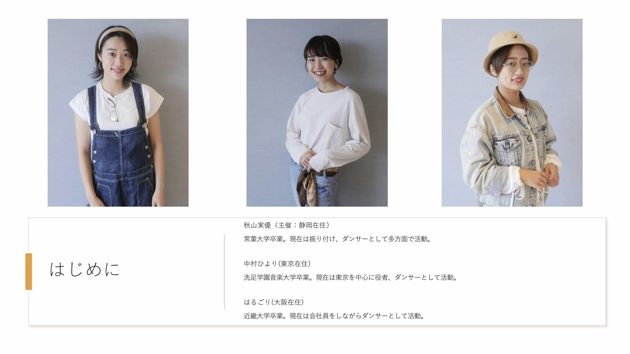 私たちは2020年9月に結成されました。しかし世は絶賛コロナ禍。芸術活動の自粛、劇場の閉鎖、不要不急の外出自粛などなど…わたしたちの生活から芸術文化はどんどん遠のいていました。「不要不急ってなに?」そう自問しながらも、私達の活動は私達にとって必要不可欠なものだけど、それは今じゃないとずっと我慢してきました。『その「今」は一体いつくるんだろう』そう不安になりながらも活動という歩みを止めていた私達がついに、結成から2年の時を経て夢の『単独公演vol.1』を計画!!!コロナ禍でも、どんな苦しい時も諦めず大きな「夢」に向かって走り続ける私達を多くの方に知って頂けたらと思い、ここに至りました。