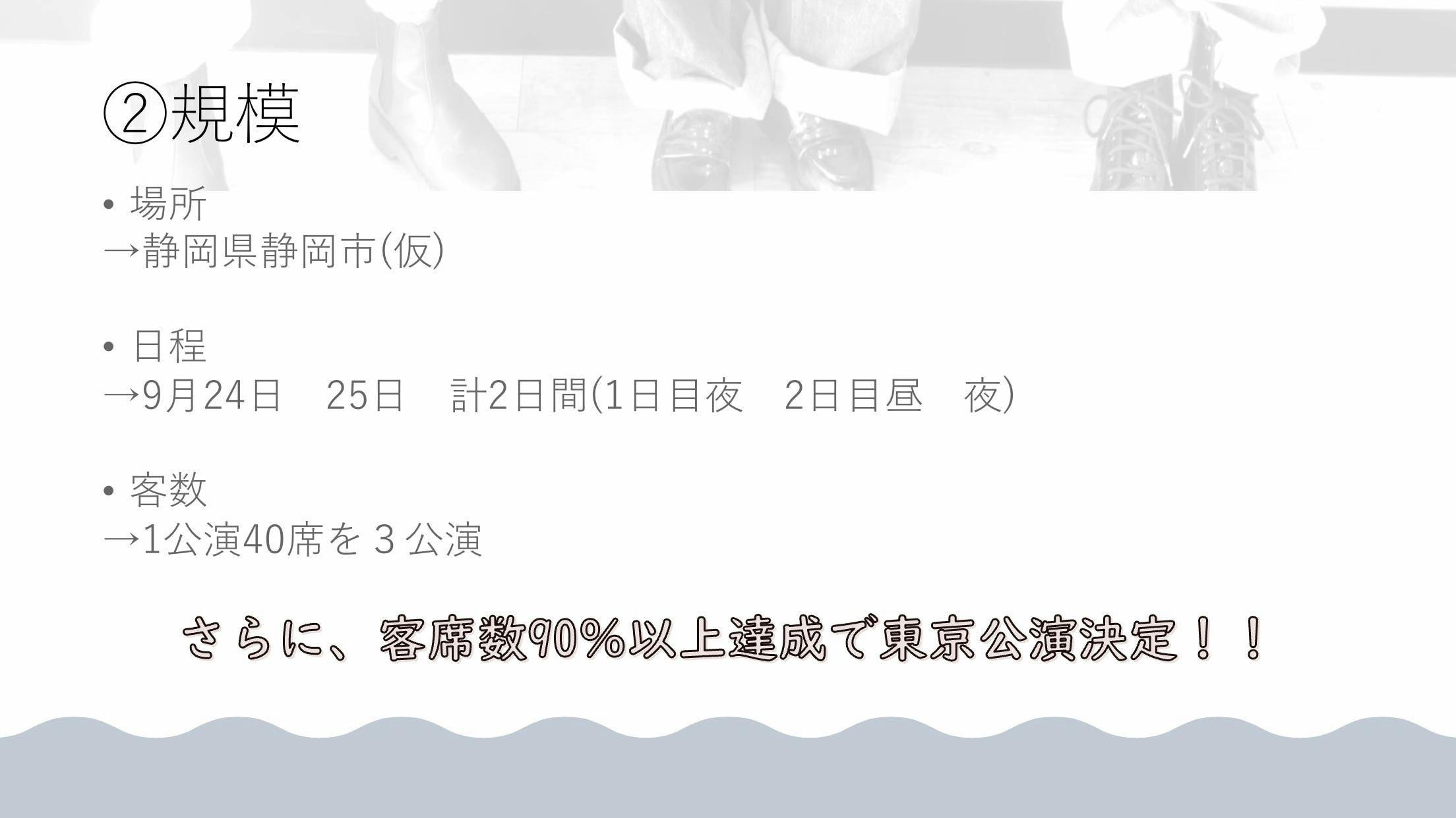 さらに、この公演の来場者数が90%以上達成で東京公演を実施いたします。