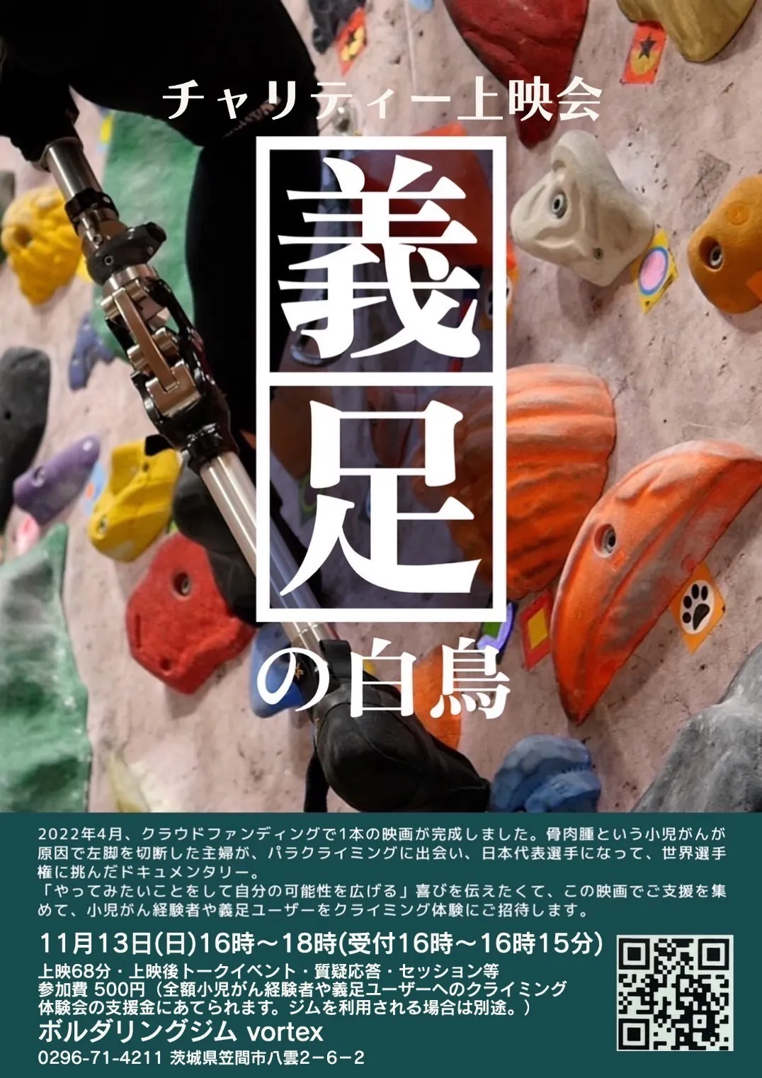 11月13日(日)、茨城県笠間市のボルダリングジムvortexで、上映会をしていただけることになりました!