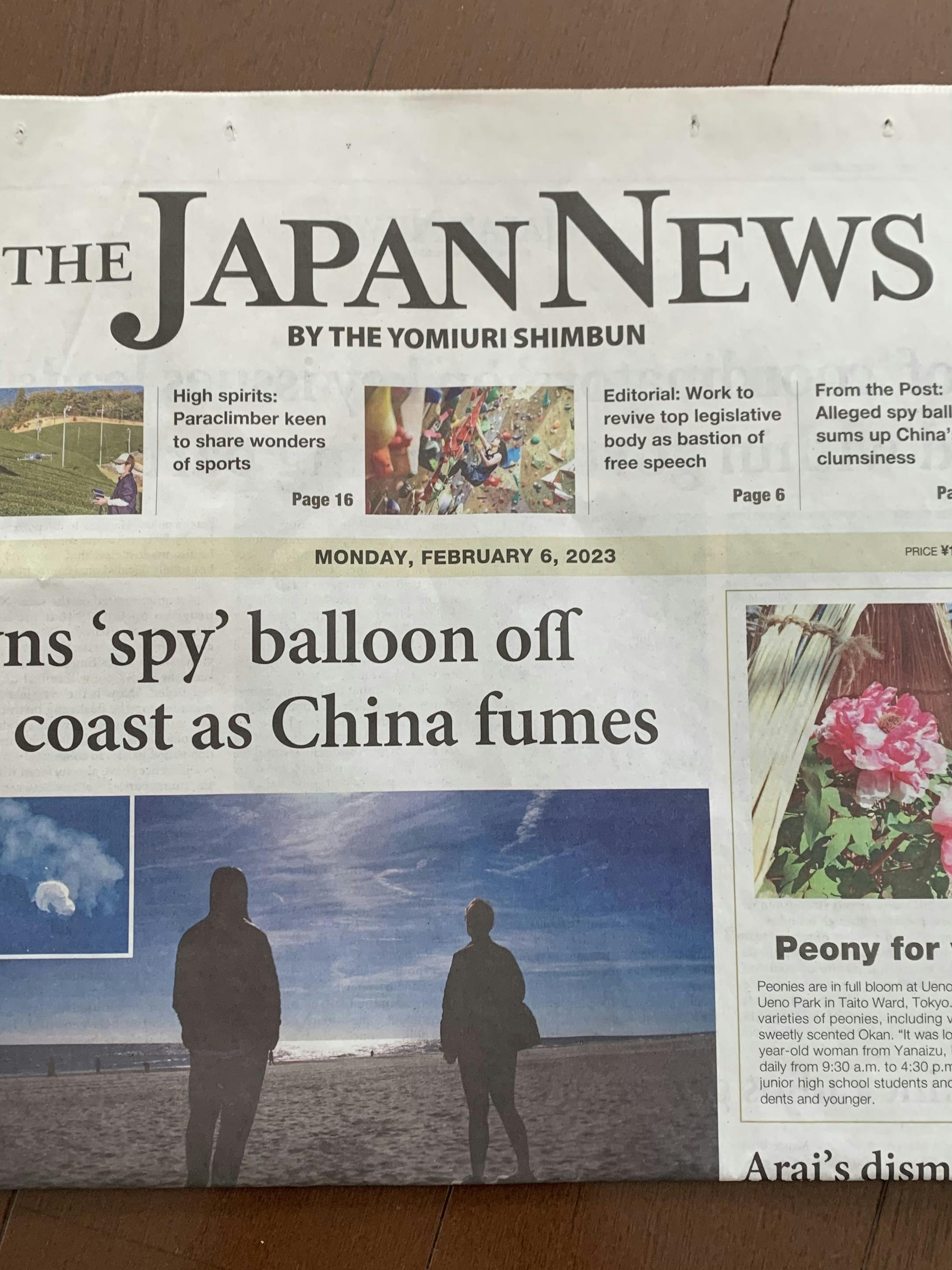 2月6日(月)の読売新聞英語版に掲載していただきました。