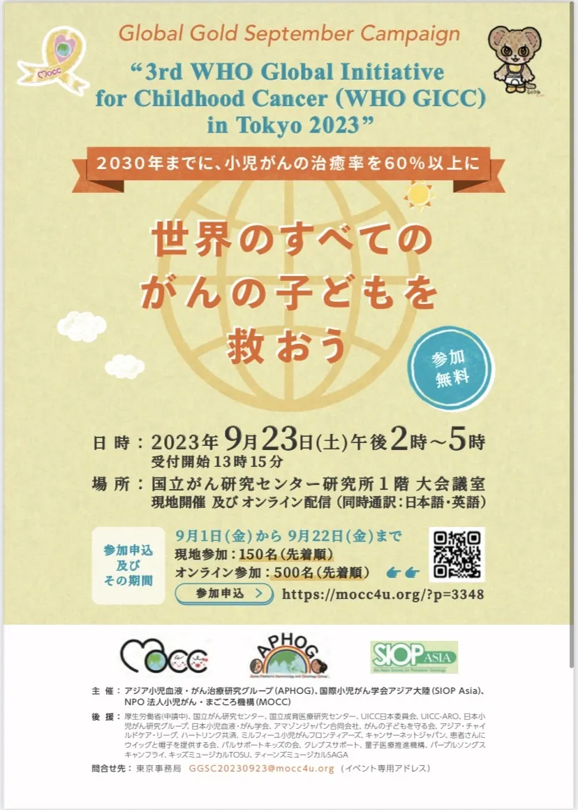 9月23日(土曜日)、WHO世界小児がん啓発キャンペーンでお話する機会をいただきました。ドキュメンタリー「義足の白鳥」のテーマでもある、誰にも可能性があること、を世界に発信する予定です。