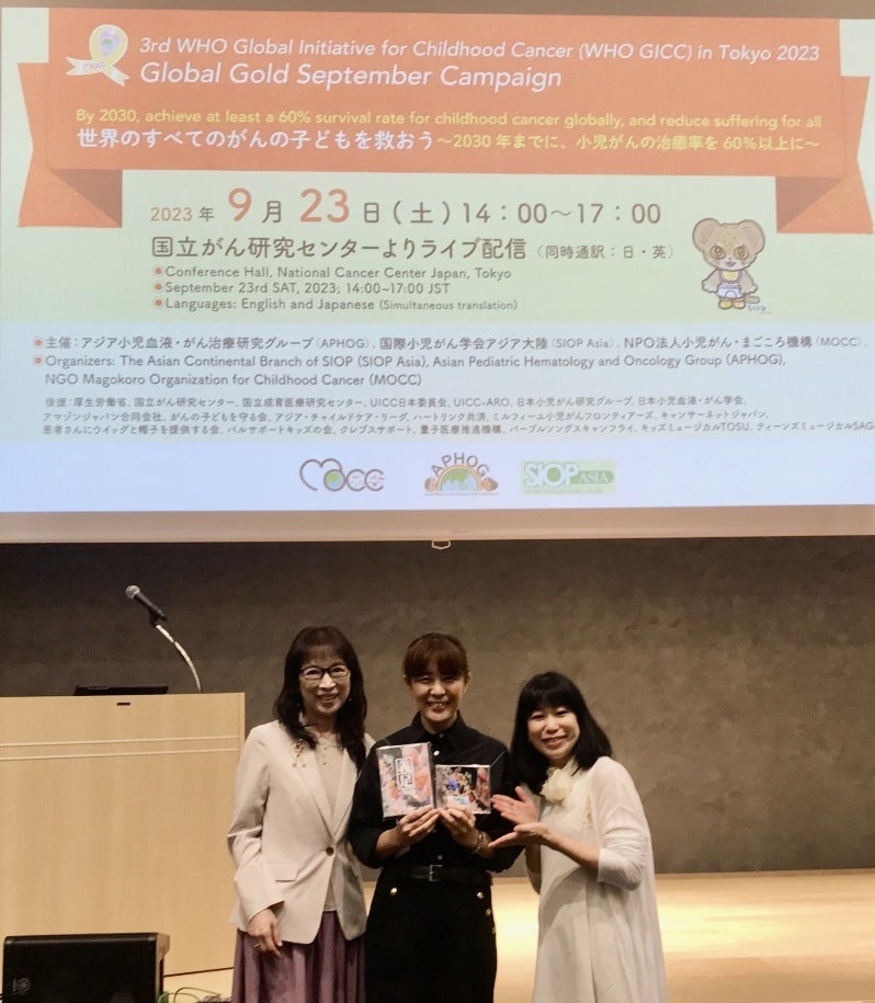 9月23日、東京都中央区の国立がん研究センターで行われたWHO世界小児がん啓発キャンペーンで講演しました。NPO法人アジア・チャイルドケア・リーグ(ACCL)の代表であり、私が病気や障害を持つ子どもに何かしたいと思うきっかけにもなった渡辺和代さんと一緒に、誰にも可能性があること、を世界に発信しました。