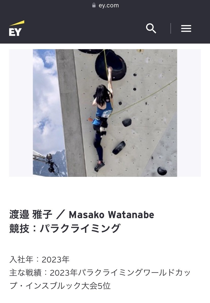 今回は困難に向き合う力というお題があり、いやもう私が教わりたいんだけど、私が小児がんやクライミングから受け取ってきた気づきや喜びや目標をお伝えしました。また、ドキュメンタリー「義足の白鳥」の紹介もさせていただけました。障害があってもなくても誰もが可能性を持っている、と私たちひとりひとりが気づいて励まし合うことで、EYが目指している「一人一人が能力を最大限に引き出せる、より良い社会の構築」につながることを願っています。