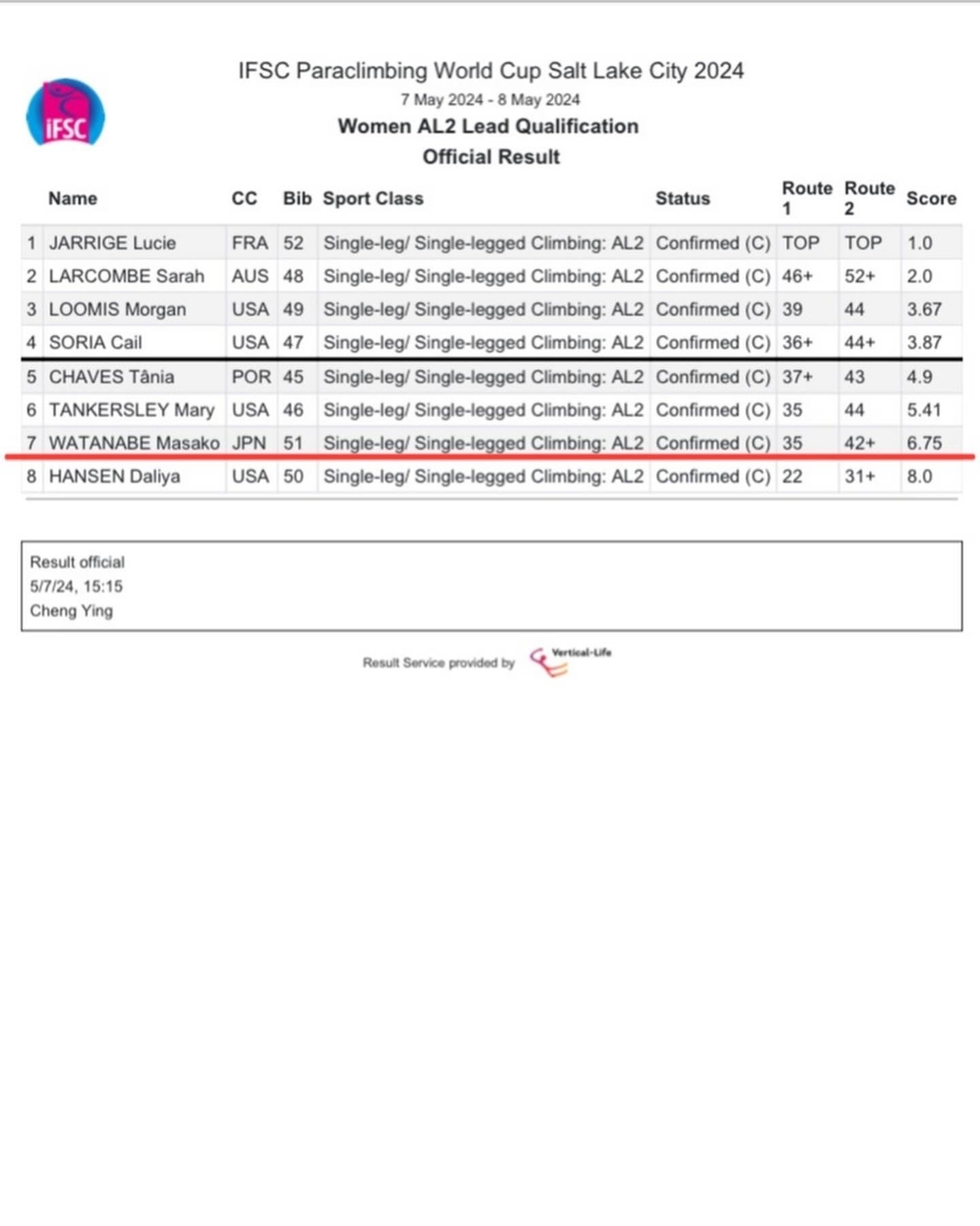私は予選7位で終わりました。課題もいくつか気づいたし、次の目標は6月のワールドカップ・オーストリア大会です。