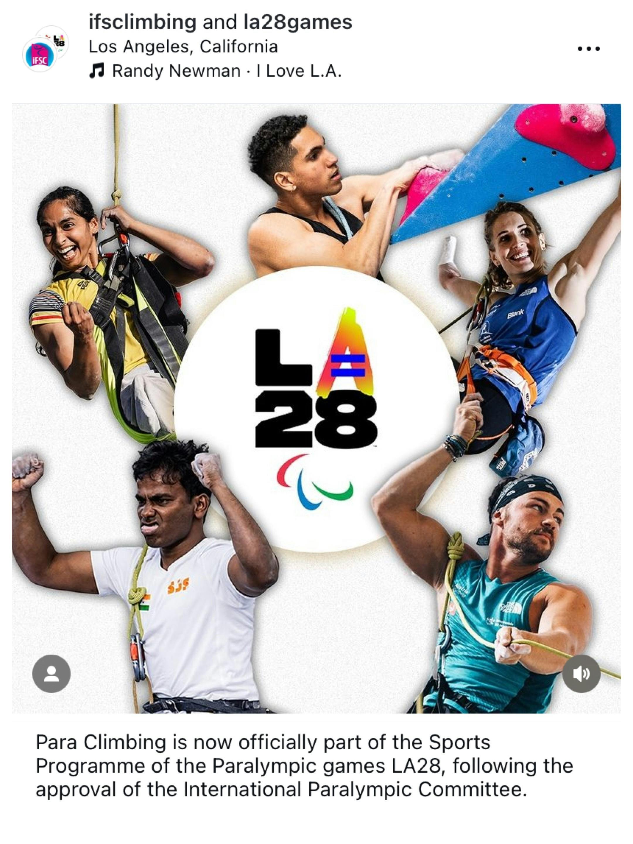 パラクライミングは2028年ロサンゼルスパラリンピックの追加競技になりました。