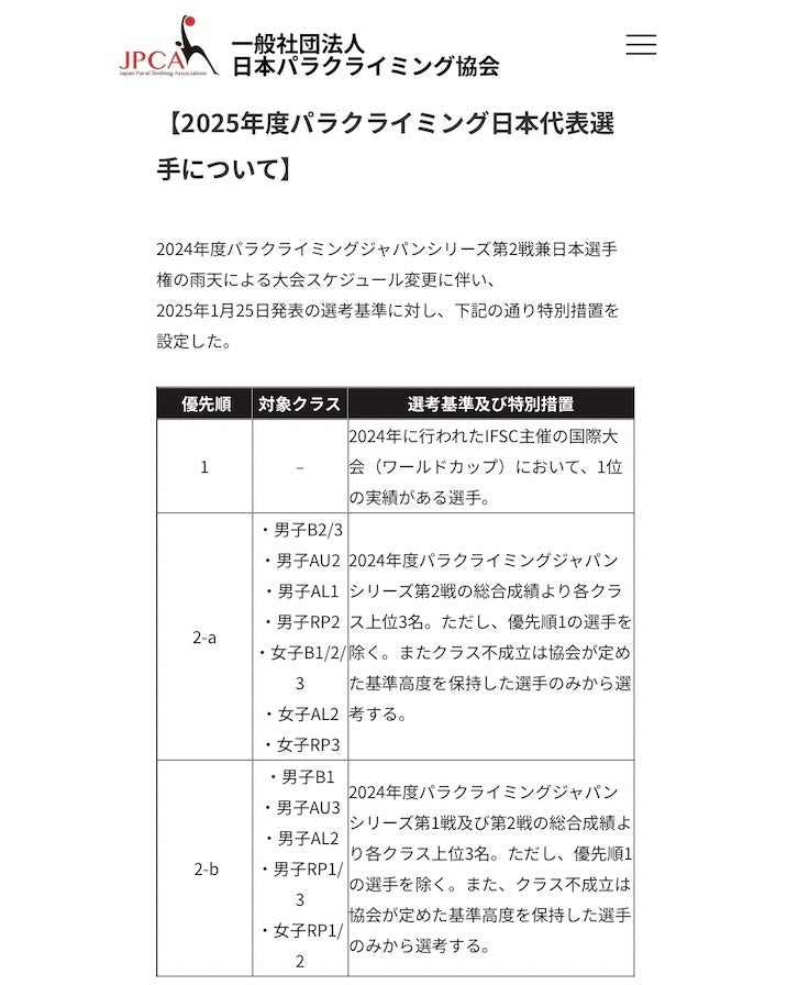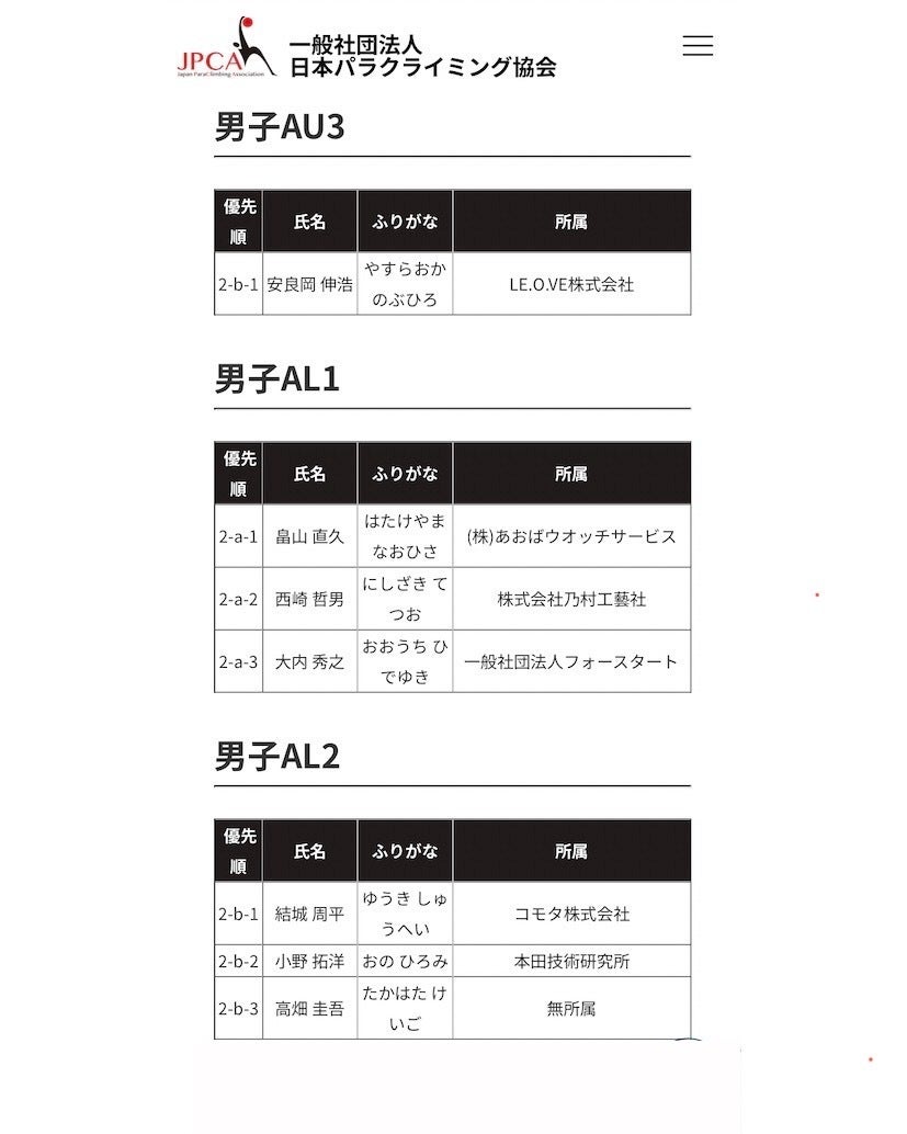 今年のパラクライミング日本代表選手になれました。