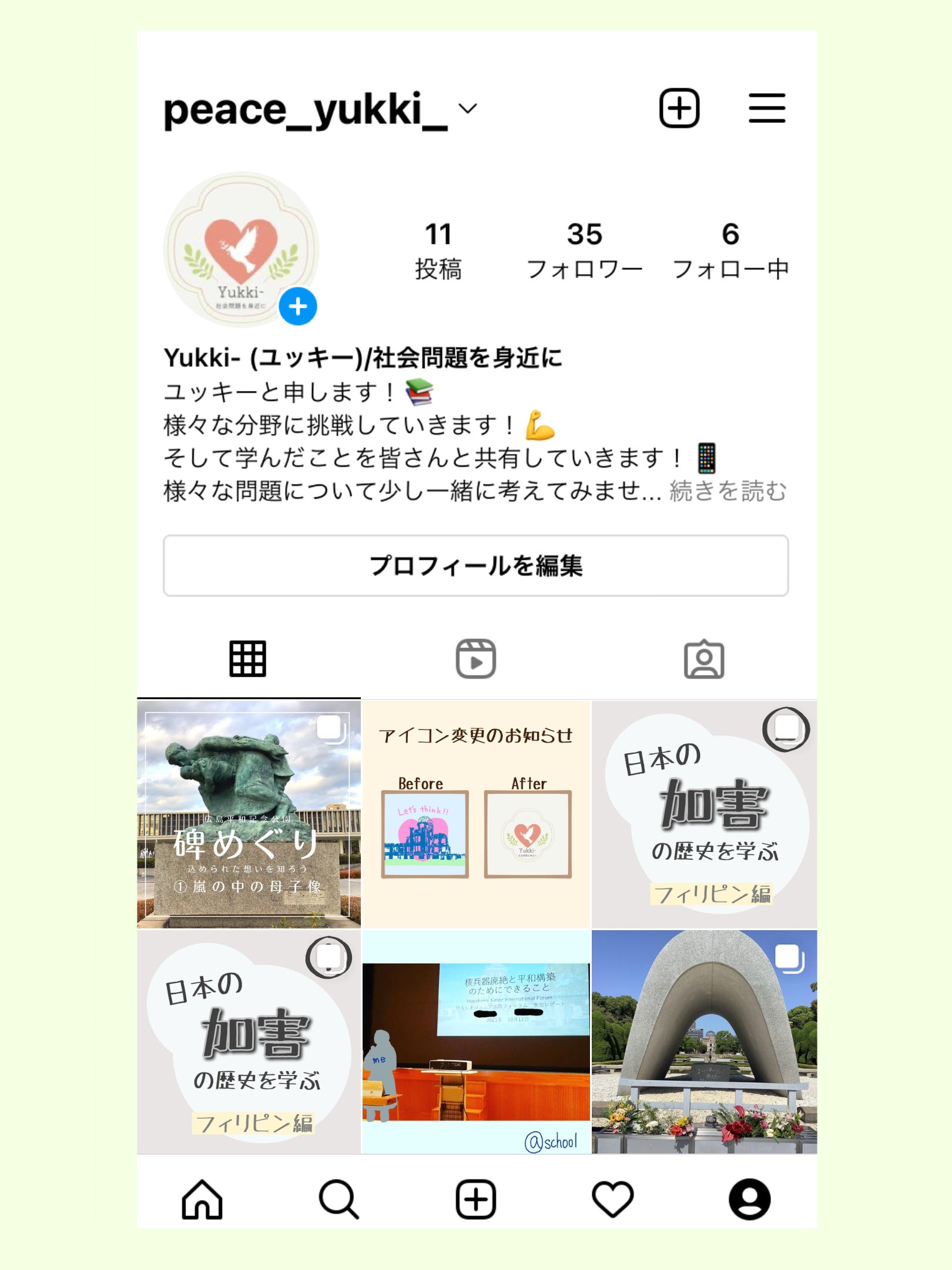 上記のひろしまジュニア国際フォーラムで作成したAction Planをもとに、SNSでの情報発信を行っています。