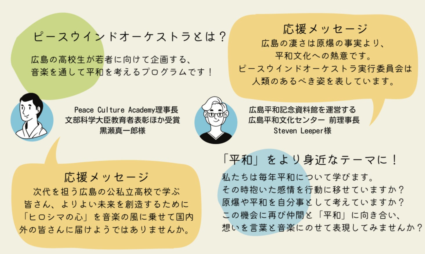 そのような中学生、高校生、大学生の行動のための第一歩となるため、この「ピースウインドオーケストラ」を企画しました!