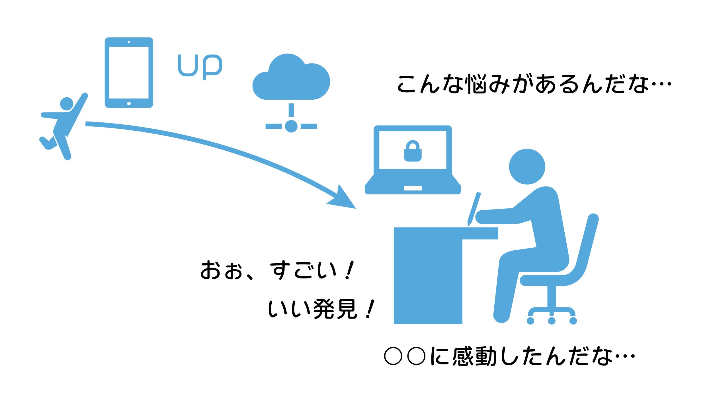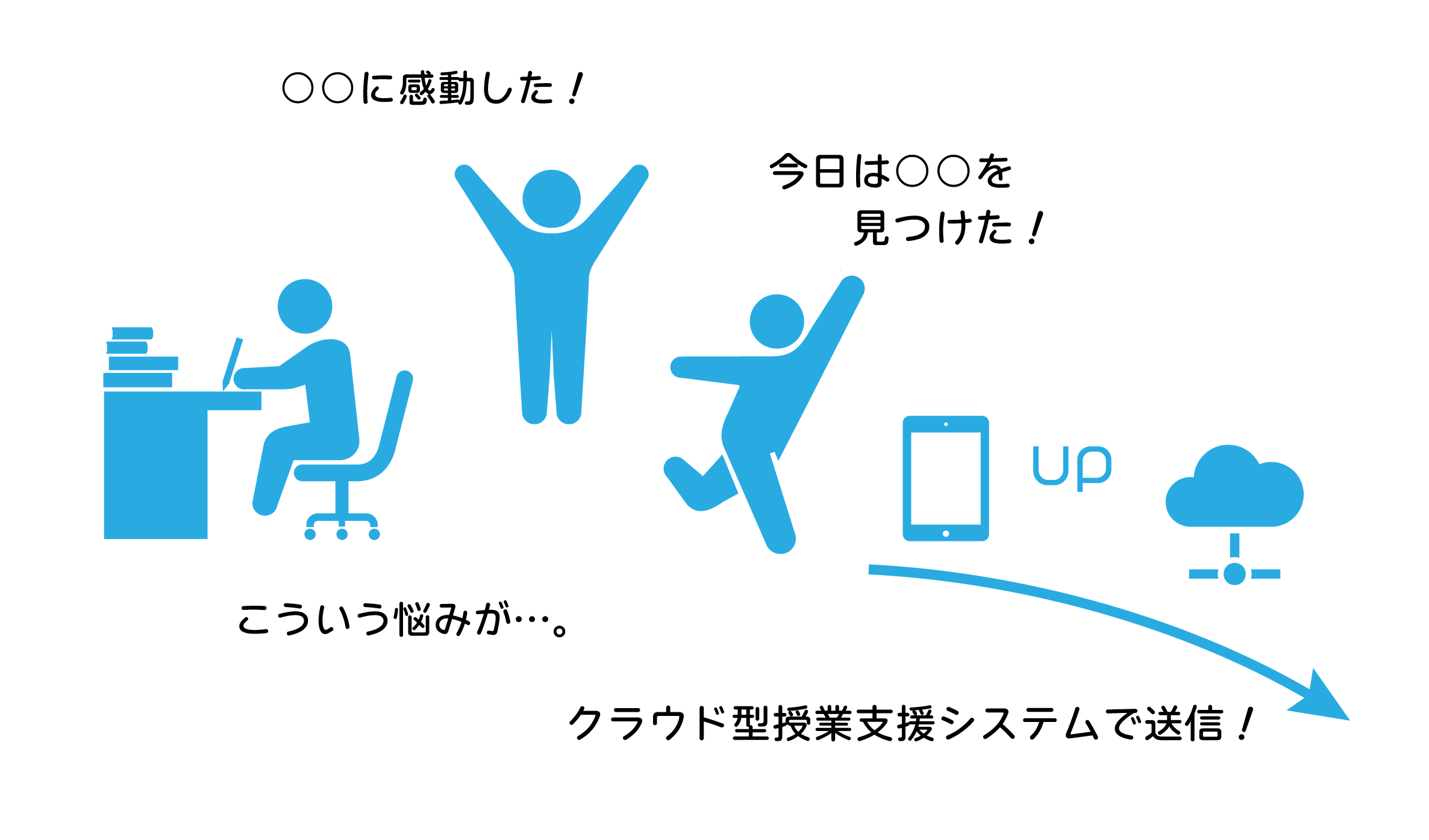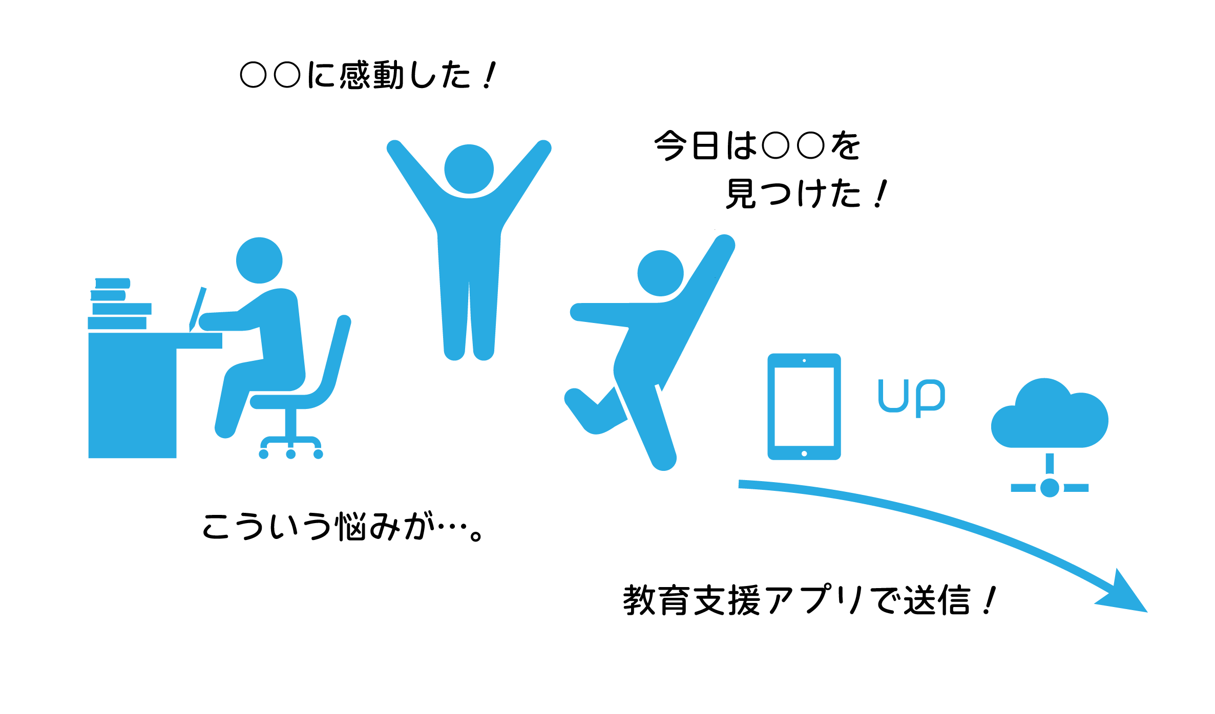 ① 小中高生に「日々の出来事」をスマホやタブレット、PCなどを使って書いてもらい、