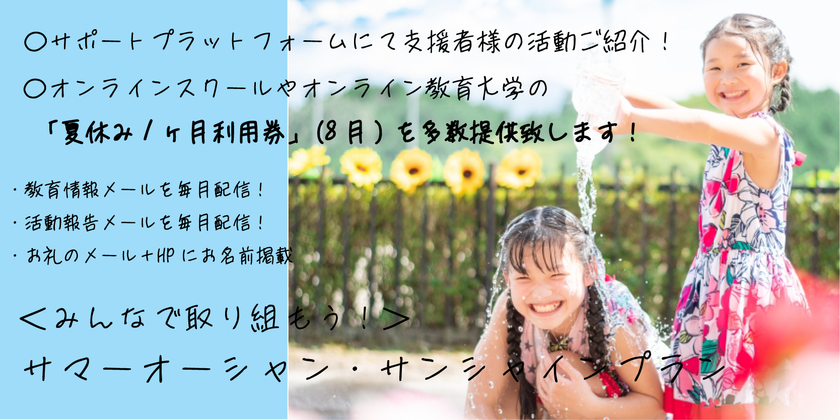 ・ オンラインスクールやオンライン教育大学の「夏休み1ヶ月利用券」を多数提供致します!!