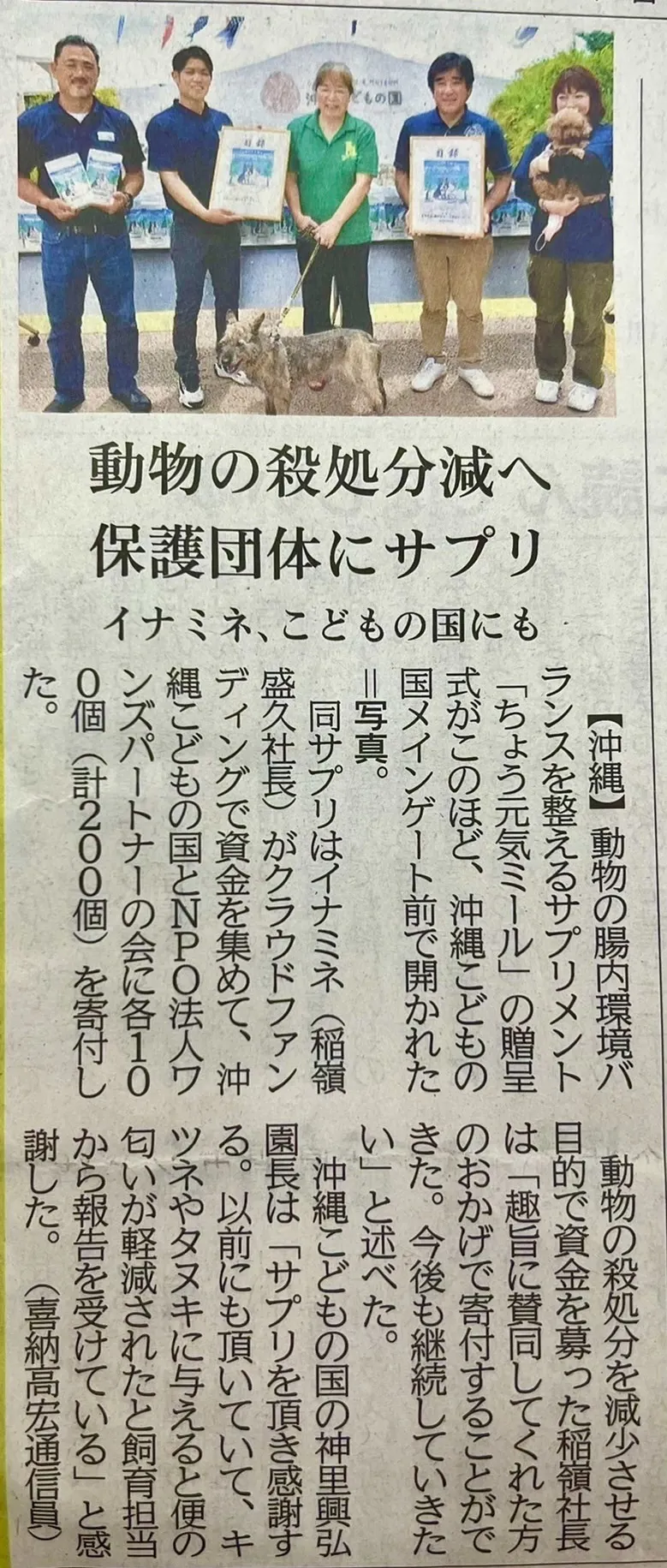 去る5月29日(日)の琉球新報朝刊に、ちょう元気ミールサプリメントを寄贈した時の様子が掲載されました。