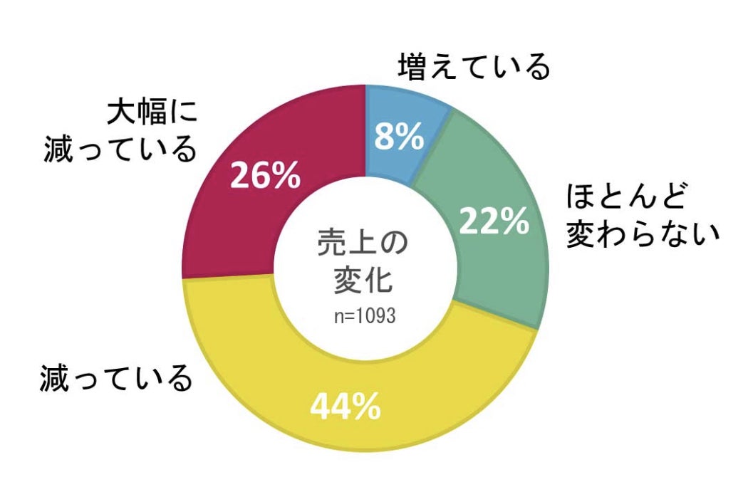 すると、「減っている」(44%)が最も多く、「大幅に減っている」(26%)と合わせると、例年より減少しているサロンが7割に上りました。