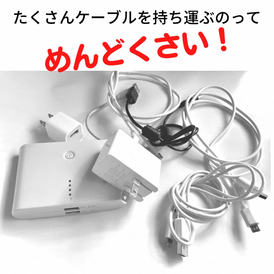 ケーブルの持ち運びは面倒ですよね!絡まったケーブルは断線の元ですし、全てのコードを持ち運ぼうとするとカバンの中がごちゃごちゃしてしまいます。
